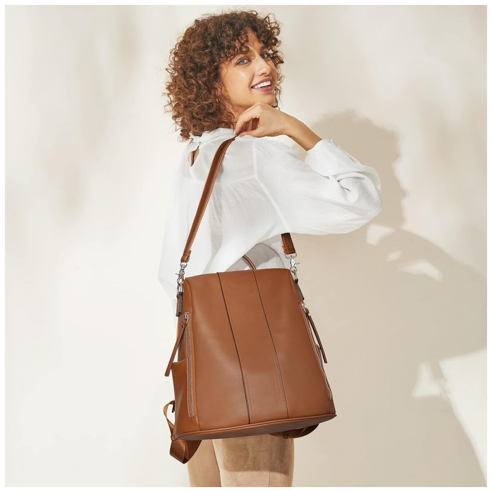 Mochila Feminina de Couro Conversível para Bolsa de Ombro S ZONE Marrom