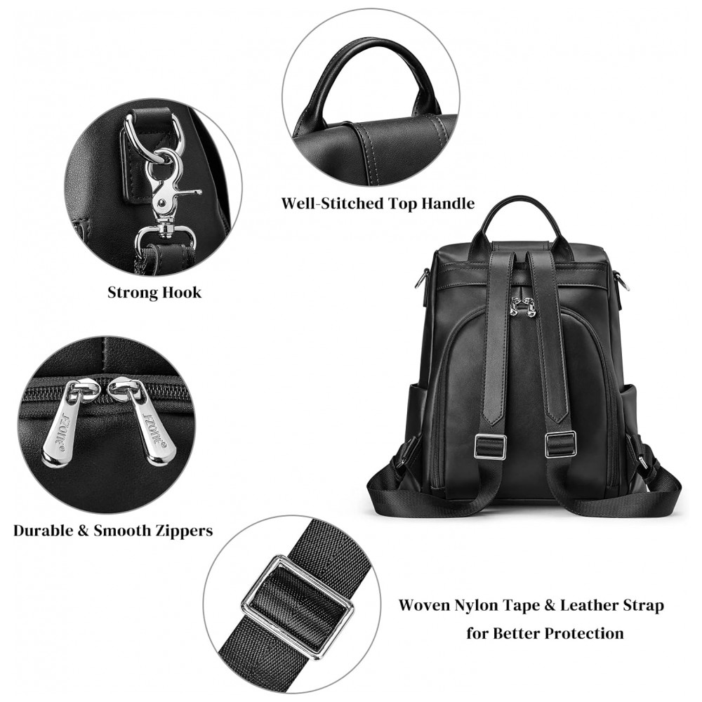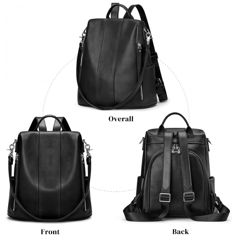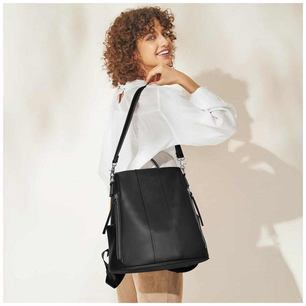 Mochila Feminina de Couro Conversível para Bolsa de Ombro S ZONE Preta