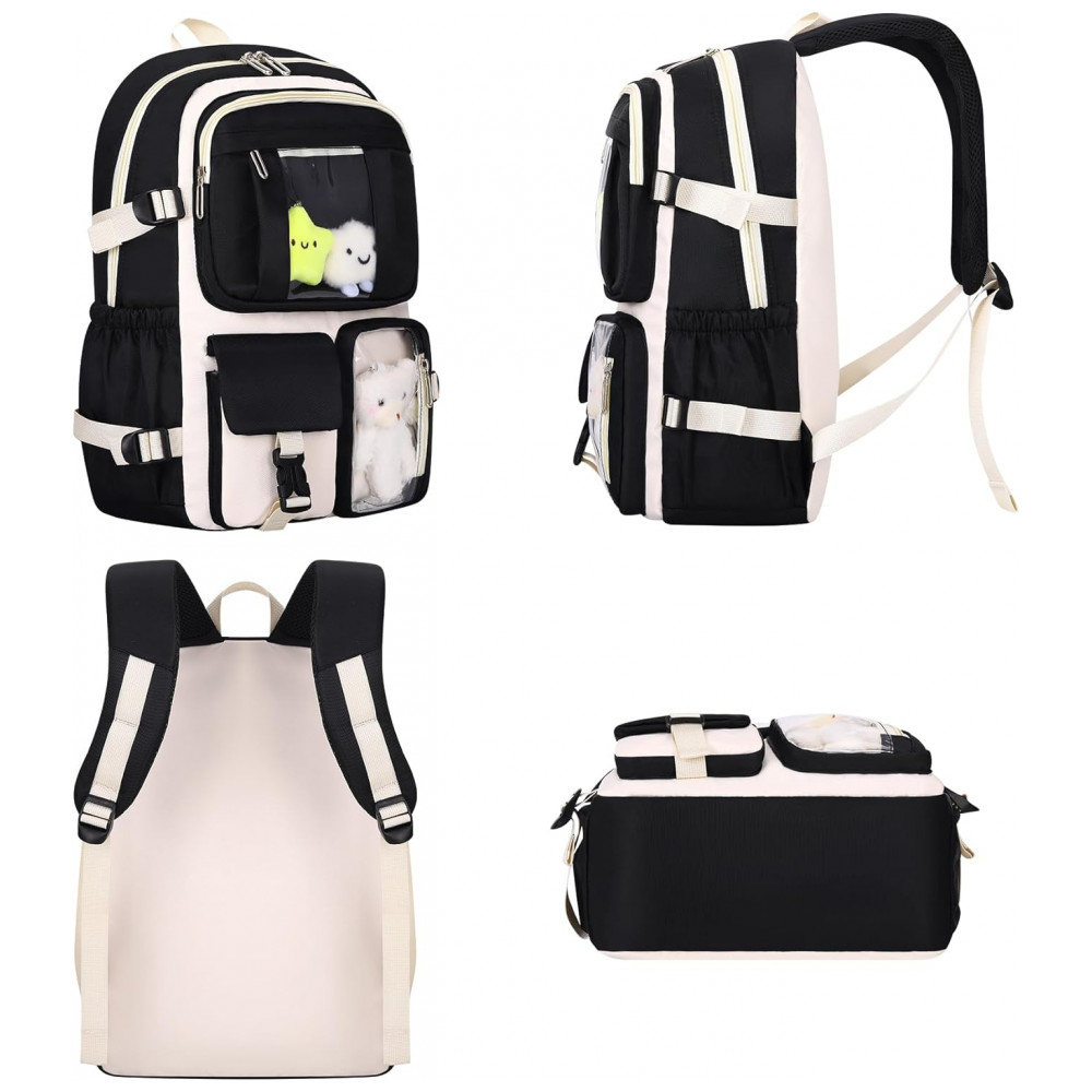 Mochila HORHREAR Kawaii 5 em 1 escolar transparente com pelúcia e estojo bege/tons colorblock
