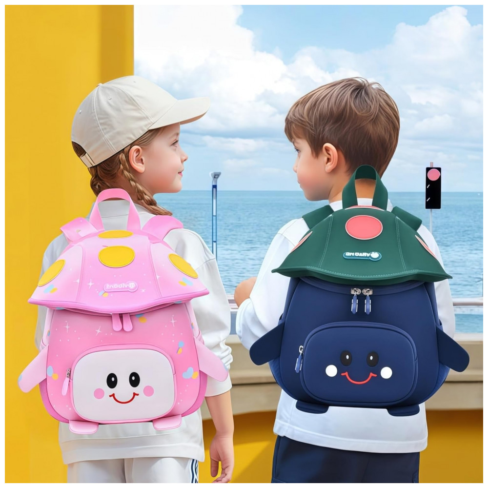 Formato/tema: Mochila com elementos de cogumelo em estilo infantil
