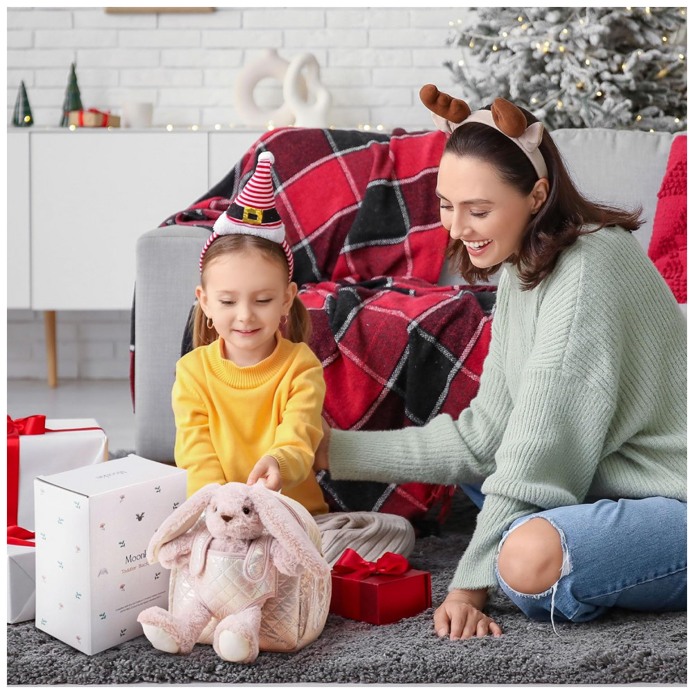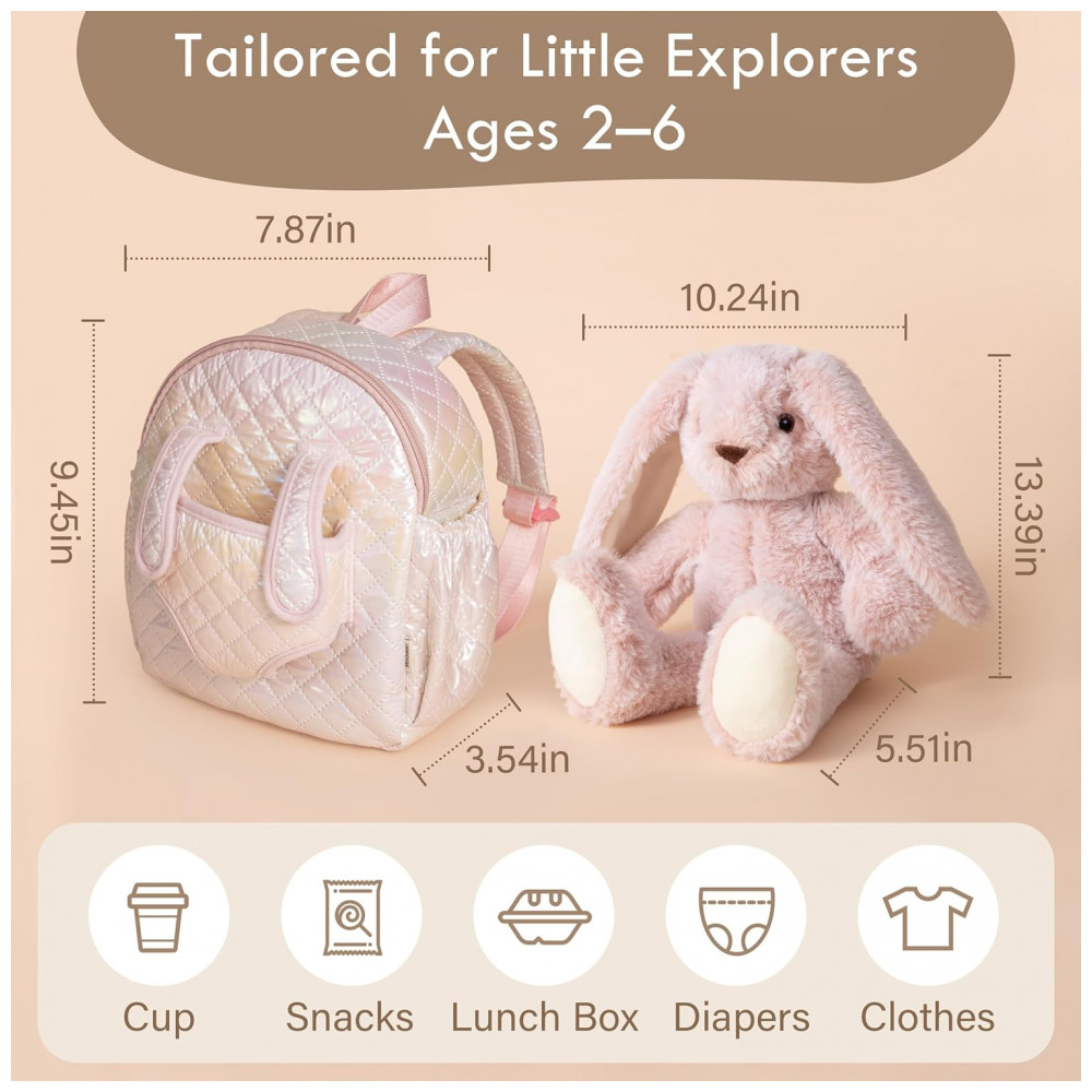 Mochila infantil de pelúcia Moonkie Hug & Go coelho com pelúcia destacável para crianças de 2 a 4 anos rosa suave