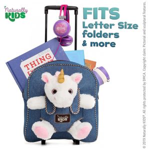 Mochila infantil de rodinhas unicórnio Naturally KIDS com pelúcia removível 32 cm