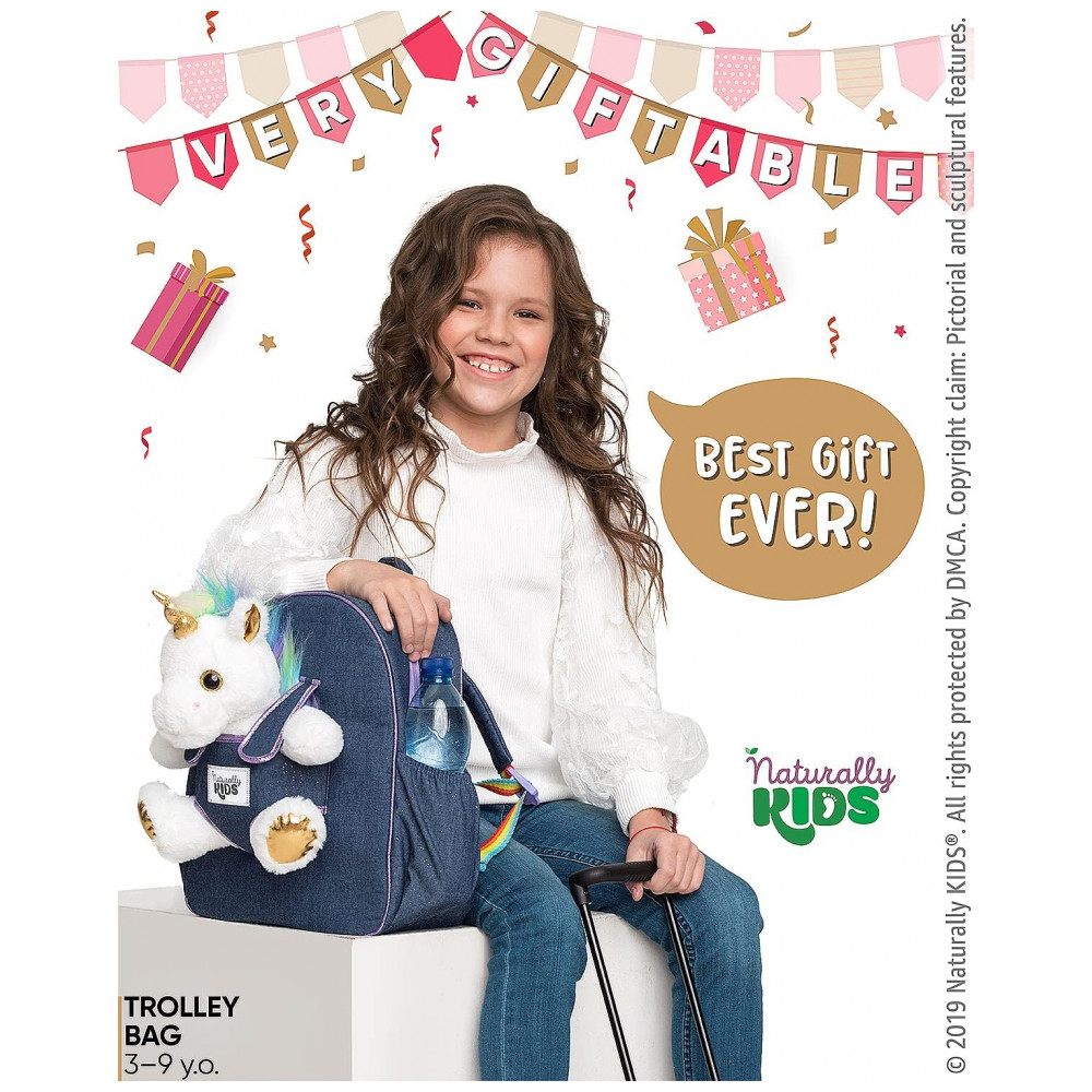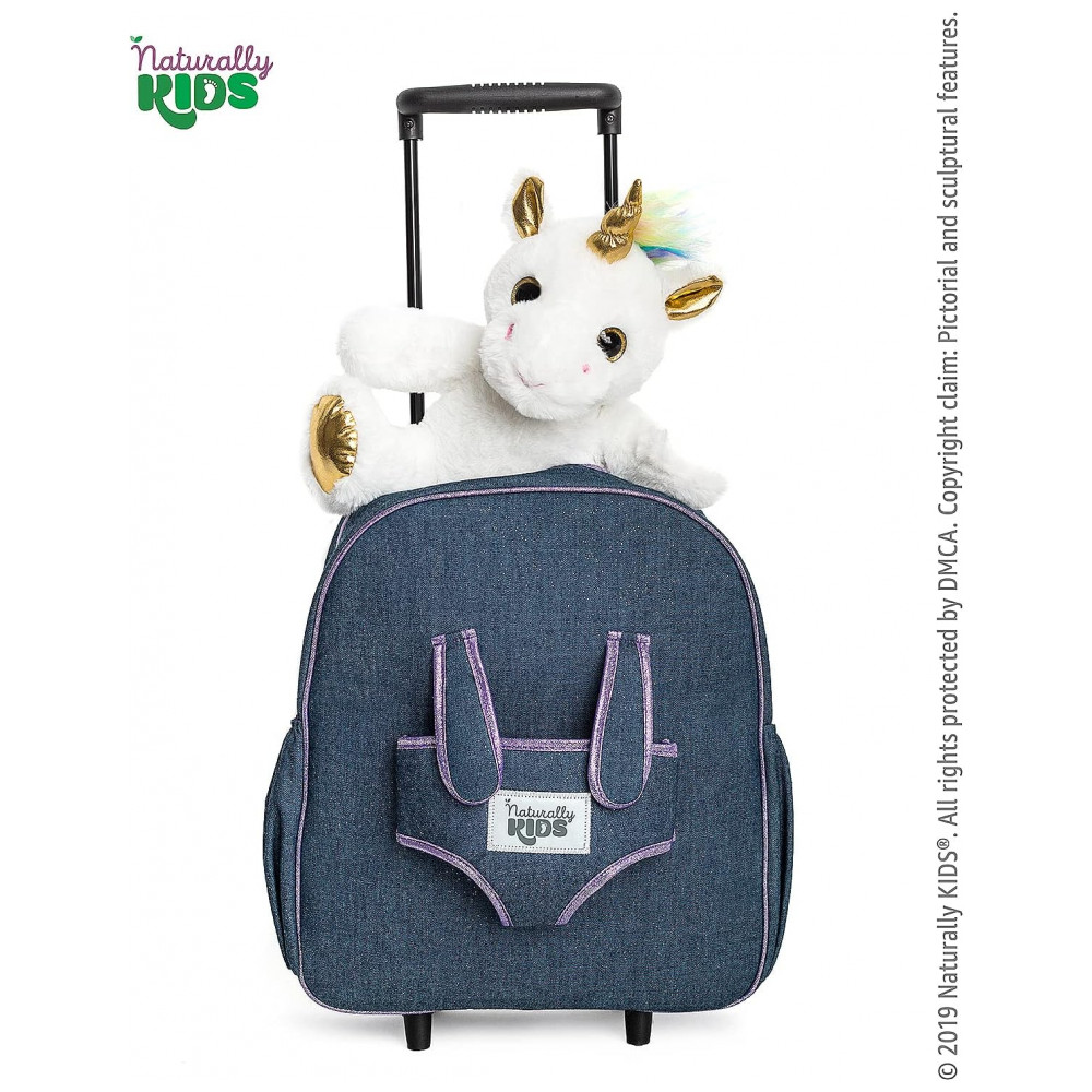 Mochila infantil de rodinhas unicórnio Naturally KIDS com pelúcia removível 32 cm