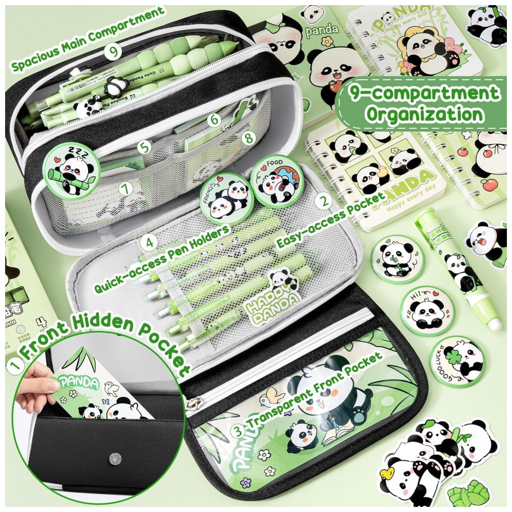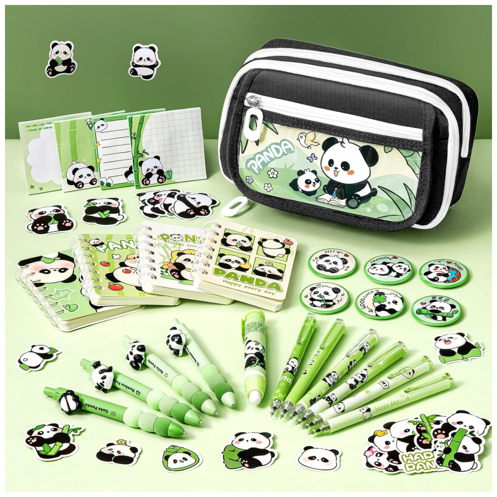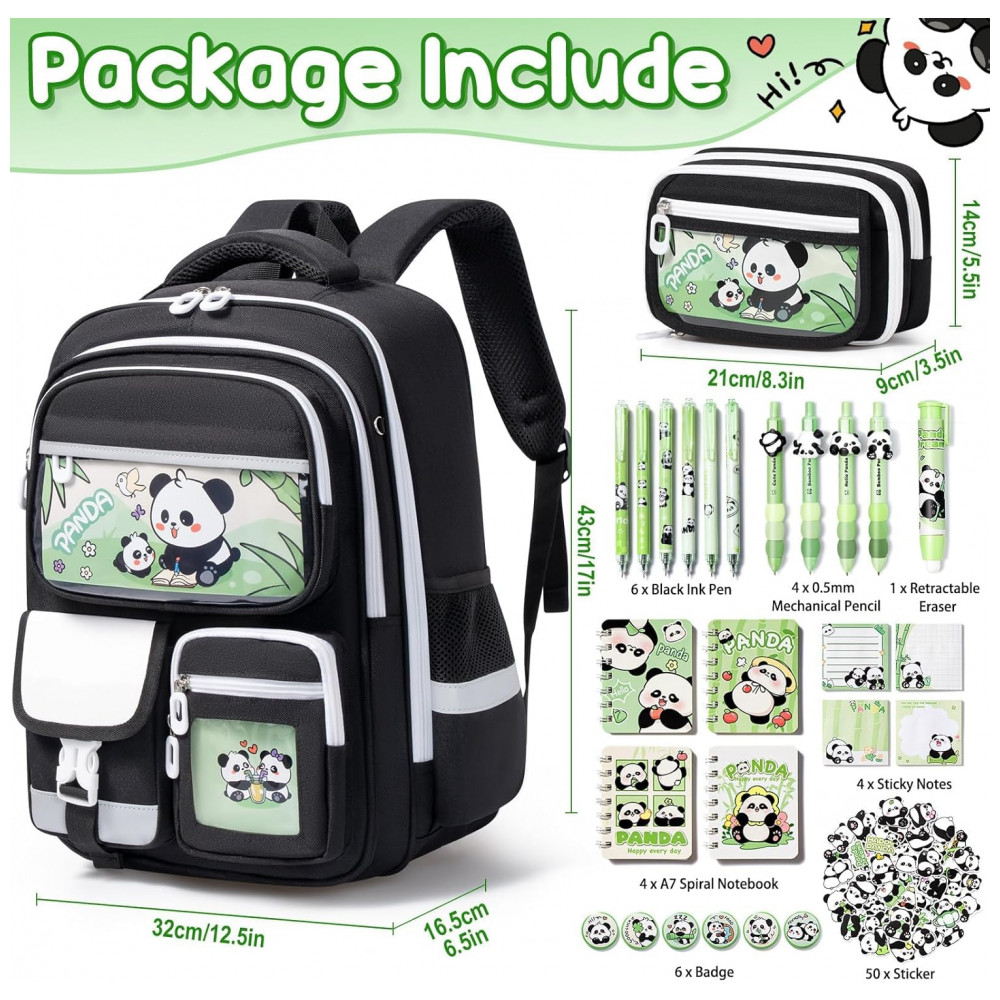 Modelo: Fimibuke Kids Backpack for School Girls 28PCS Panda Toddler School Supplies Stationery Set with Bookbag Pencil Case Pins Gel Pens Pencils Notebooks