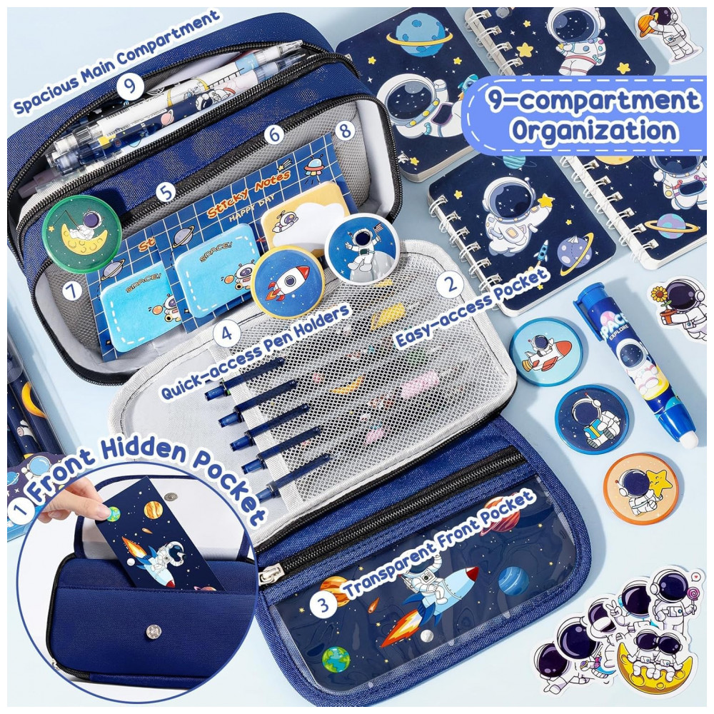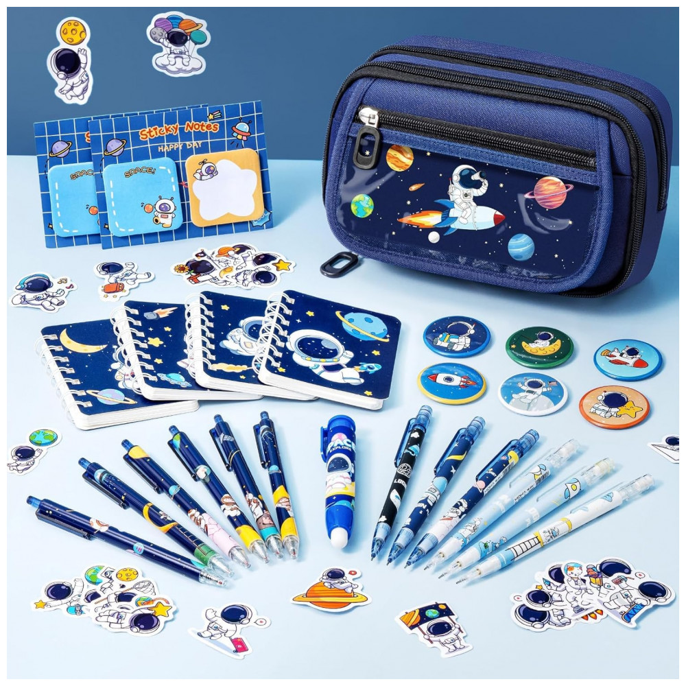 Modelo: Fimibuke Kids Backpack for School Boys 30PCS Space Toddler School Supplies Stationery Set with Bookbag Pencil Case Pins Gel Pens Pencils Notebooks