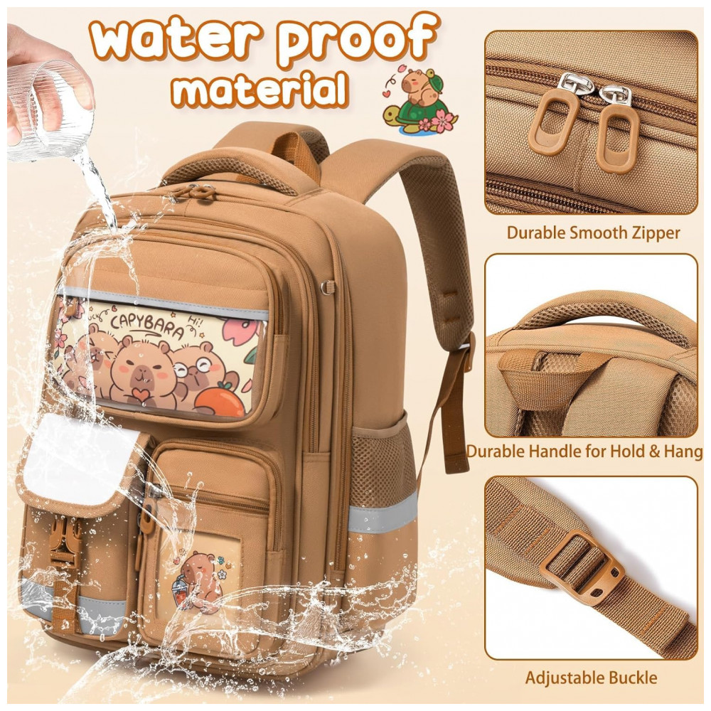 A mochila infantil Fimibuke com kit escolar espacial 30 peças é indicada para uso em escola, creche e atividades do dia a dia, sendo fabricada em material têxtil leve com revestimento em nylon de alta densidade e forro em poliéster, com compartimento principal para livros, cadernos e roupas leves, divisória acolchoada para dispositivos, três bolsos frontais com zíper para estojo e pequenos acessórios, dois bolsos laterais com elástico para garrafa ou guarda-chuva e alças reguláveis com tira peitoral e costas acolchoadas em tecido respirável para maior conforto em uso prolongado.