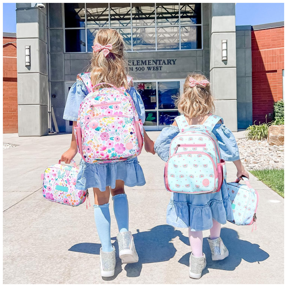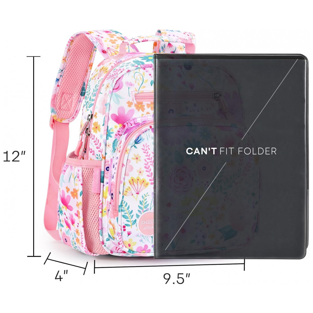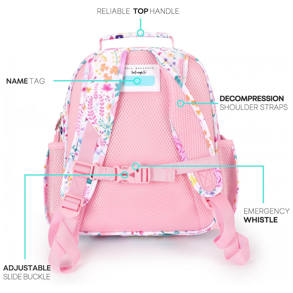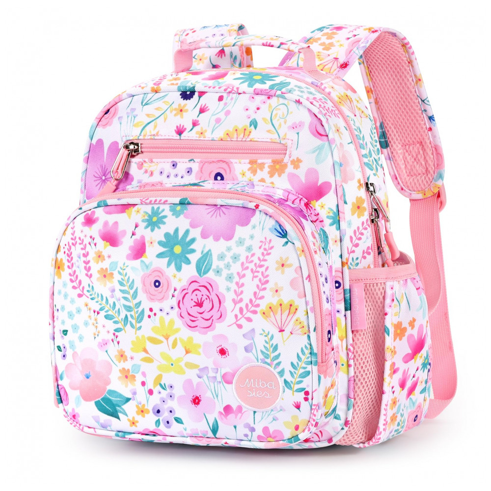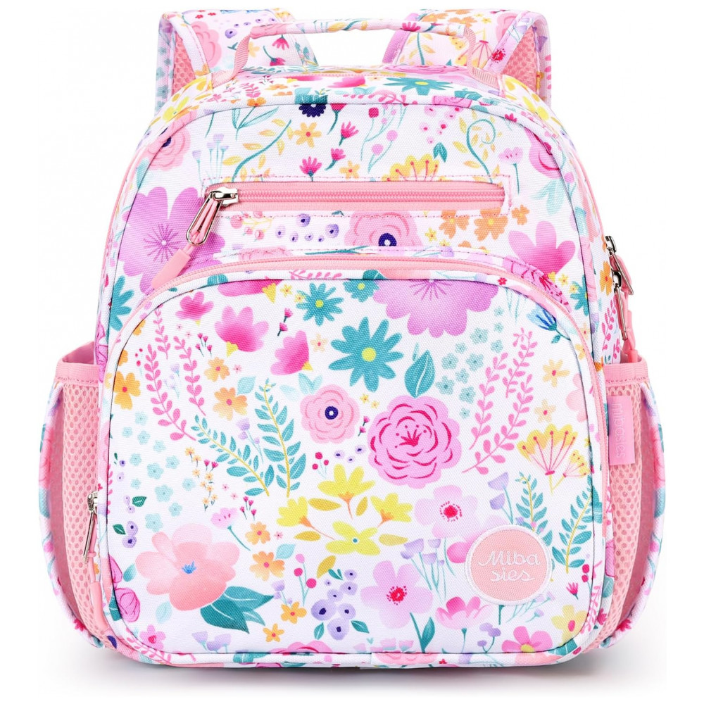 A mochila infantil mibasies floral rosa foi desenvolvida para meninas de 2 a 4 anos, com capacidade de 7 litros e formato leve adequado para pré-escola, jardim de infância e passeios diários. O modelo combina compartimento principal para livros e roupas com bolso frontal térmico para lanches, além de bolsos laterais dimensionados para garrafinhas e guarda-chuva infantil.