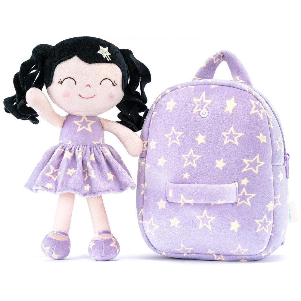 Modelo: Gloveleya Toddler Backpacks Curly Hair Plush Figures Dress Backpack Kids Backpack Curly Hair Spring Girl – Black Head Purple Star 9 inches