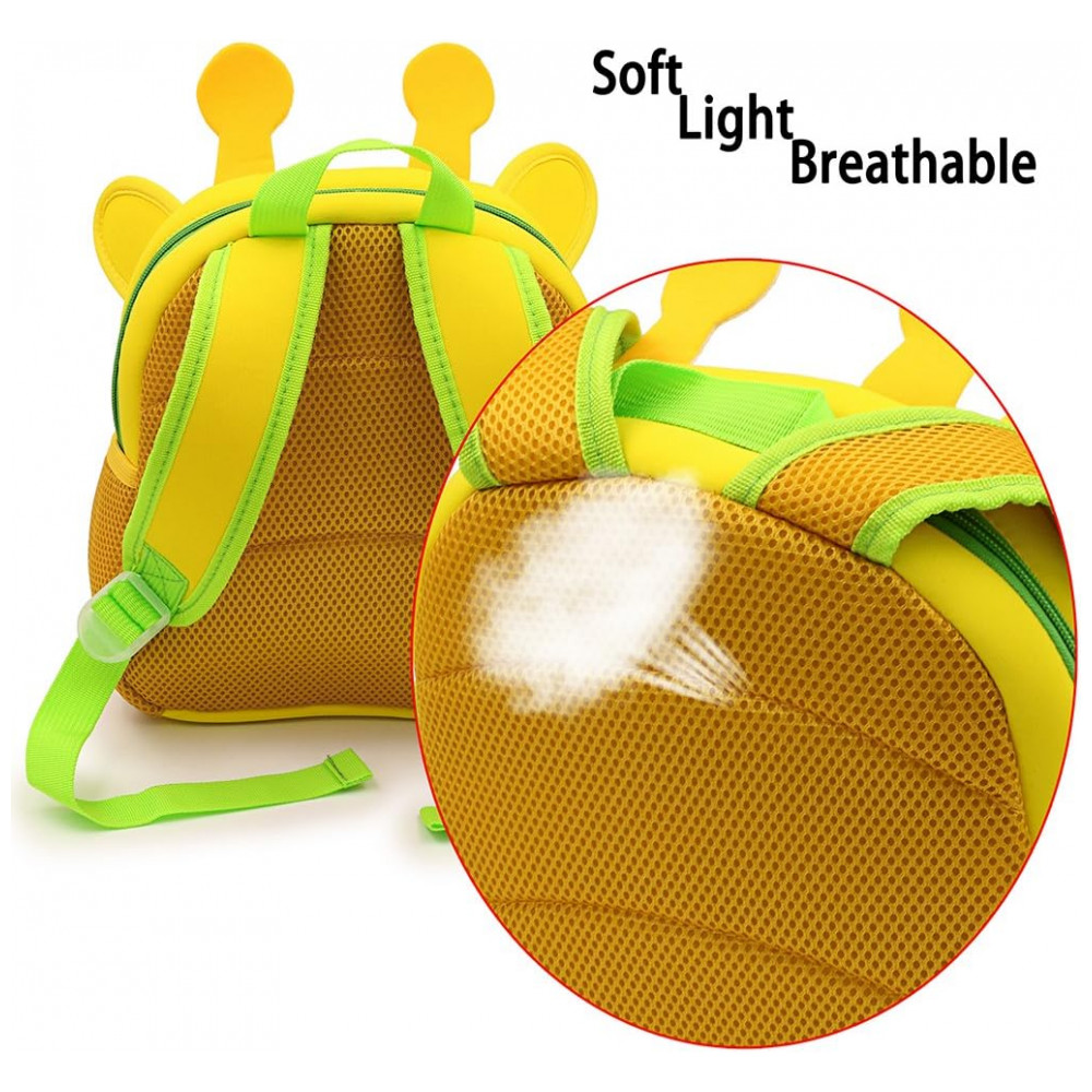 A mochila infantil Hipiwe girafa é indicada para crianças pequenas em uso de creche, pré-escola e passeios, fabricada em neoprene leve e macio, resistente à água, com compartimento principal para brinquedos, lancheira pequena, roupas leves e material escolar básico, bolso frontal com zíper adequado para lanches e itens de acesso rápido, dois bolsos laterais em neoprene para garrafinha e alças de ombro ajustáveis e acolchoadas para maior conforto no uso diário.