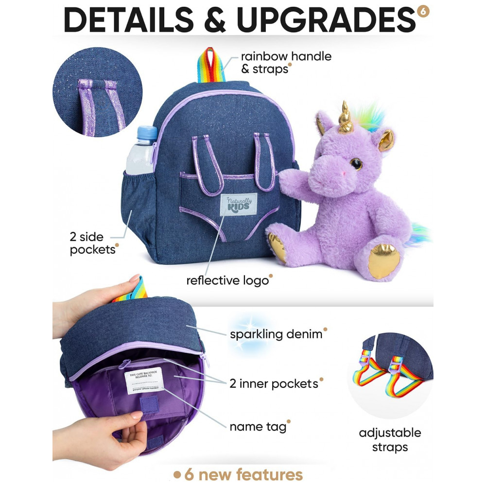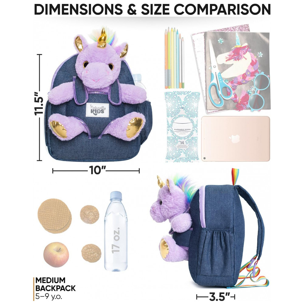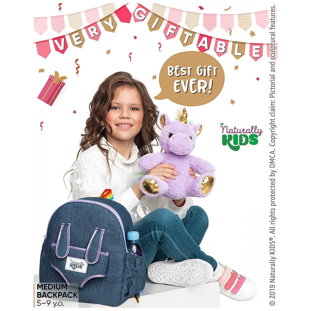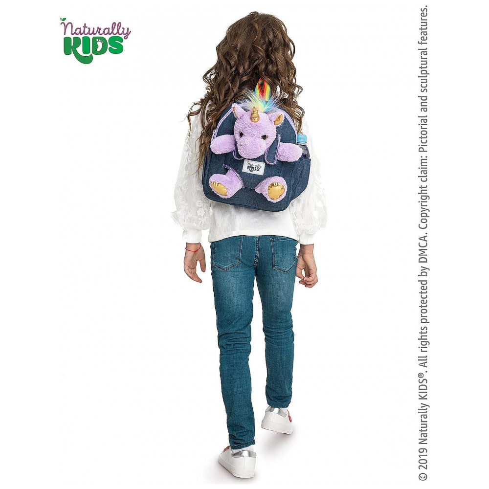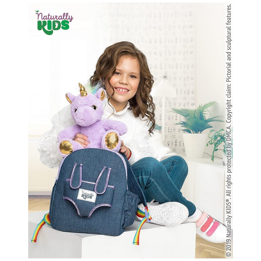 Mochila infantil média unicórnio roxo Naturally KIDS com pelúcia removível 29 cm