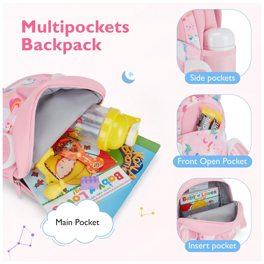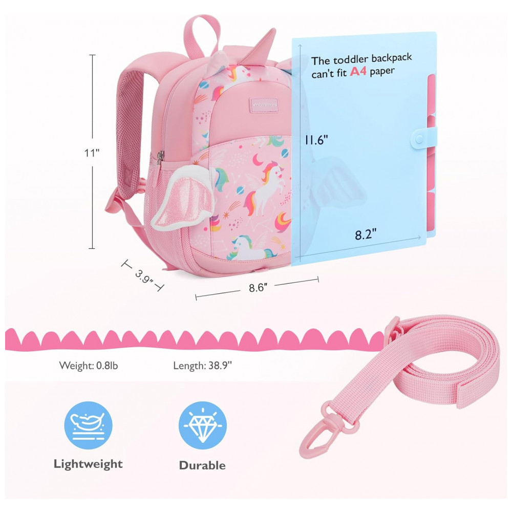 Modelo: mommore Toddler Backpack for Girls 2-4 Neoprene Unicorn Backpack with Kids Leash 3D Cartoon Preschool Kindergarten Bookbag for Pre-k Pink