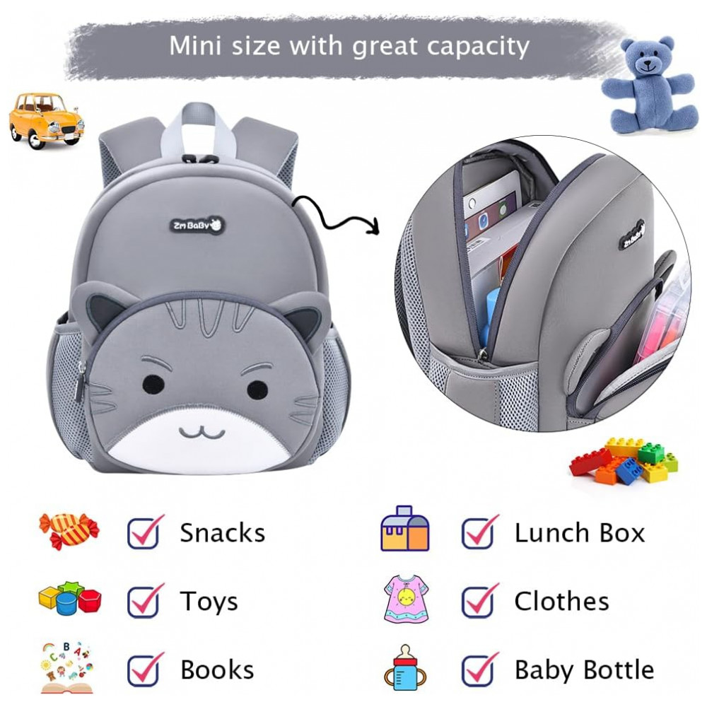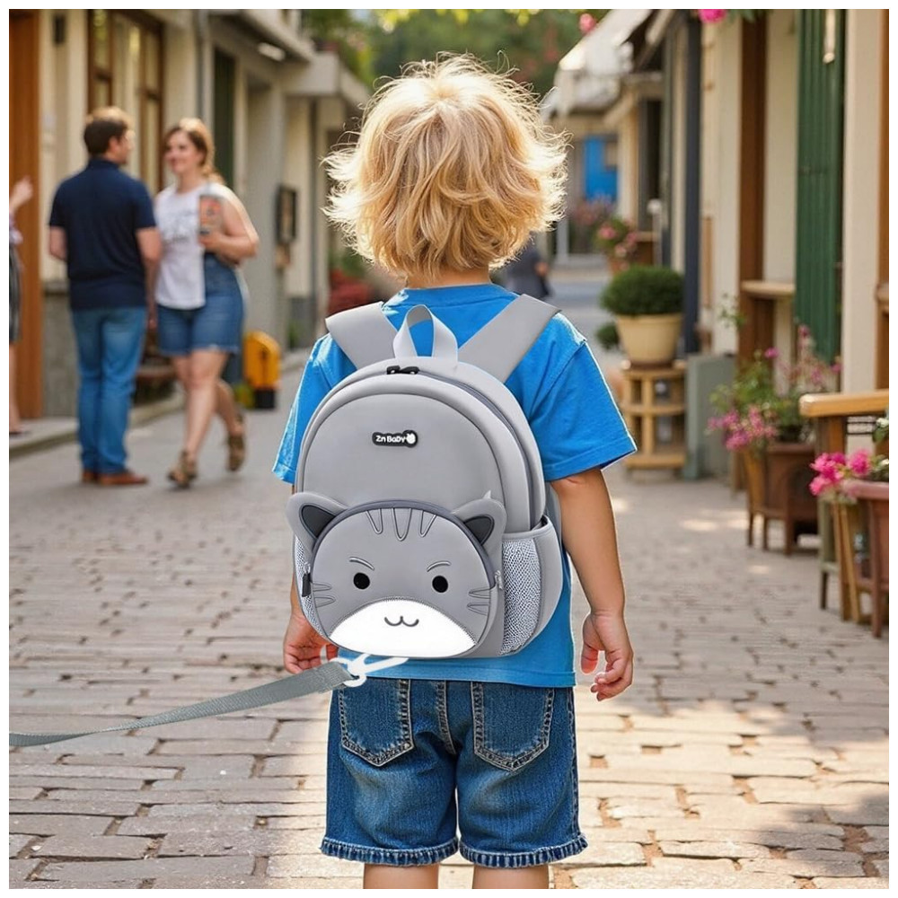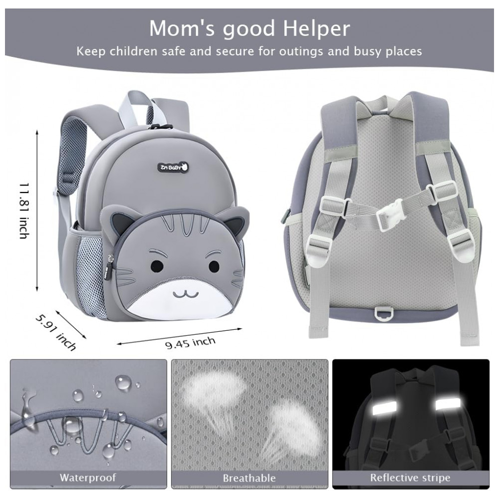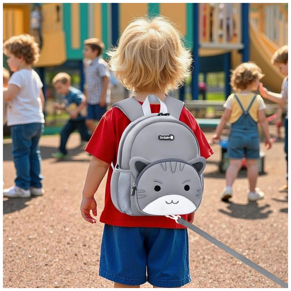 A mochila infantil Padgene em neoprene com personagem de gato 3D foi desenvolvida para crianças de 3 a 5 anos, combinando formato mini, material leve e impermeável para uso em pré-escola, passeios e pequenas viagens. O modelo inclui uma alça-guia destacável para segurança em locais movimentados, permitindo que a criança explore com mais liberdade enquanto permanece próxima ao responsável.
