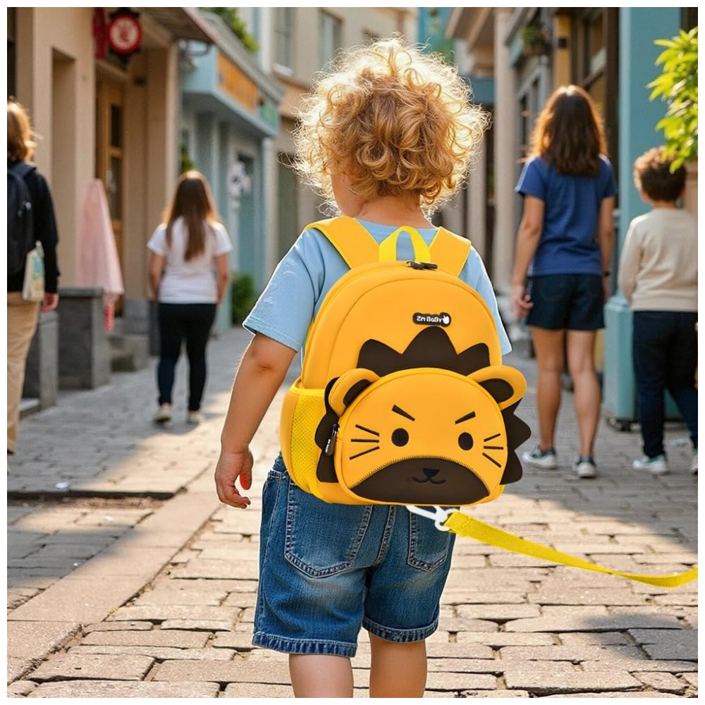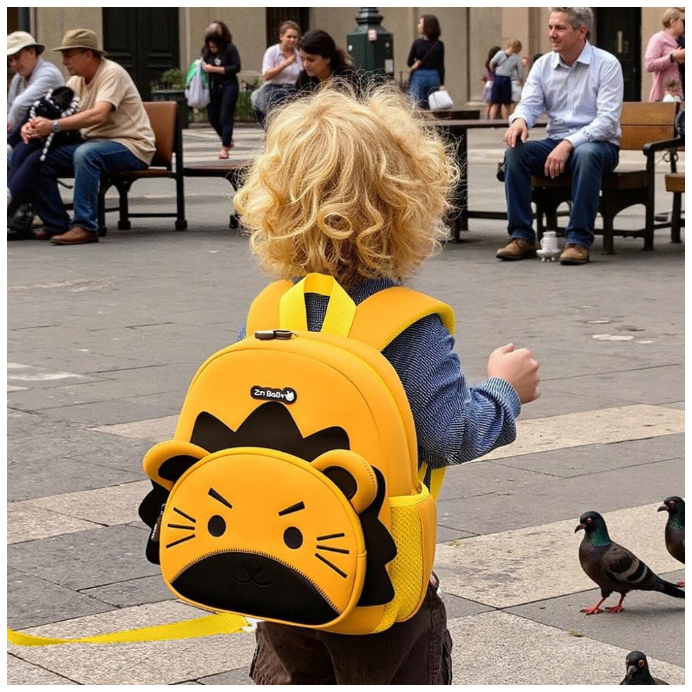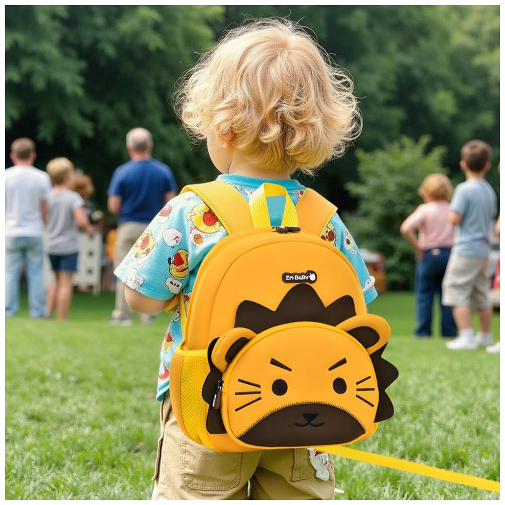 O modelo incorpora alça guia destacável para auxiliar a manter a criança próxima em locais movimentados, além de alças de ombro acolchoadas, regulagem peitoral e painel traseiro em malha respirável. O compartimento principal com zíper e bolsos laterais para garrafa ou lenços contribuem para uma organização simples, enquanto o material em neoprene e detalhes refletivos favorecem resistência a respingos e visibilidade em passeios no fim do dia.
