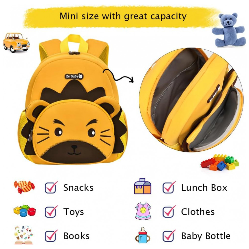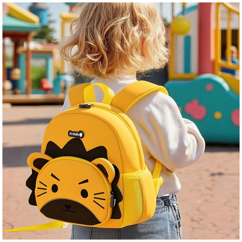 Mochila infantil em neoprene com estampa 3D de personagem animal, indicada para crianças em idade pré‑escolar, aproximadamente de 3 a 5 anos, para uso em escola, passeios, viagens curtas e atividades ao ar livre. O corpo da mochila é leve e macio, com capacidade em torno de 13 litros, adequado para transportar lancheira, brinquedos, caderno pequeno, muda de roupa leve e outros itens de uso diário.