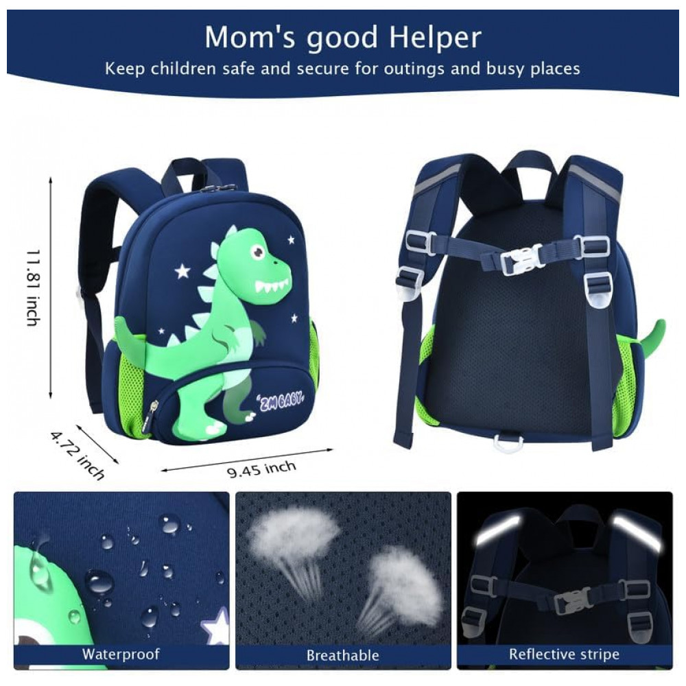 Mochila infantil Padgene em neoprene com alça guia e estampa 3D para crianças de 3 a 5 anos