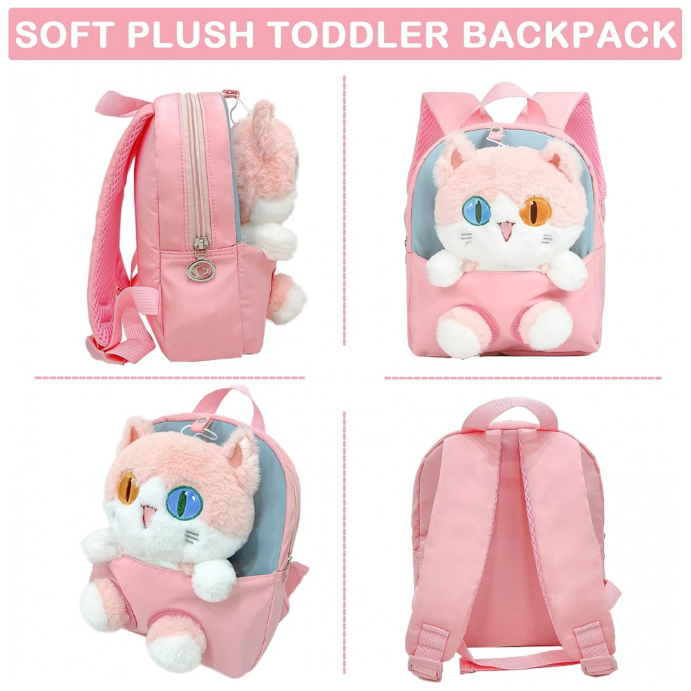 Mochila infantil RETEN com gatinho de pelúcia removível para crianças