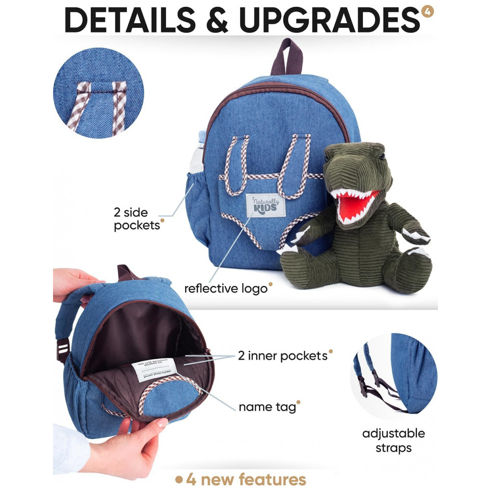 Conteúdo da embalagem: 1 mochila infantil e 1 dinossauro de pelúcia destacável
