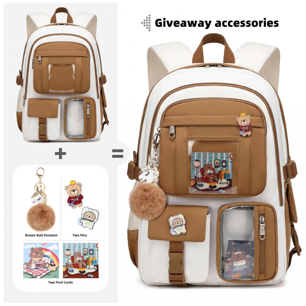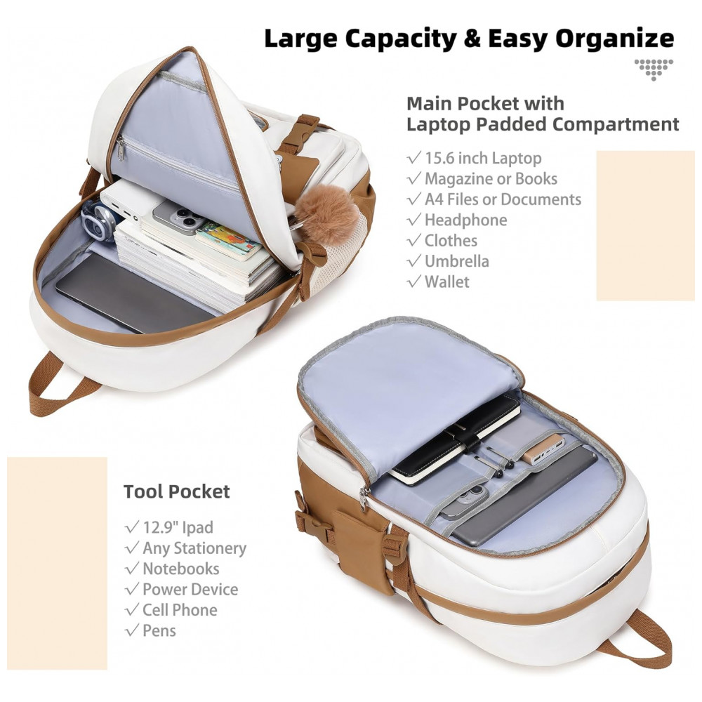 O tecido externo em náilon de alta densidade é leve e impermeável, com forro em poliéster estampado e zíperes metálicos resistentes, adequado para uso frequente em ambiente urbano e escolar. As alças em formato “S” são largas, acolchoadas e ajustáveis, a fita lateral ajuda a estabilizar a base quando a mochila está cheia, e a alça traseira para mala permite acoplar a mochila ao carrinho de bagagem em viagens.