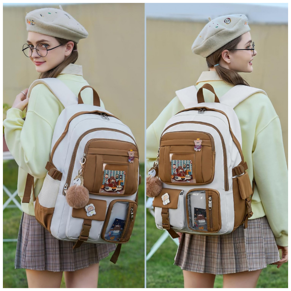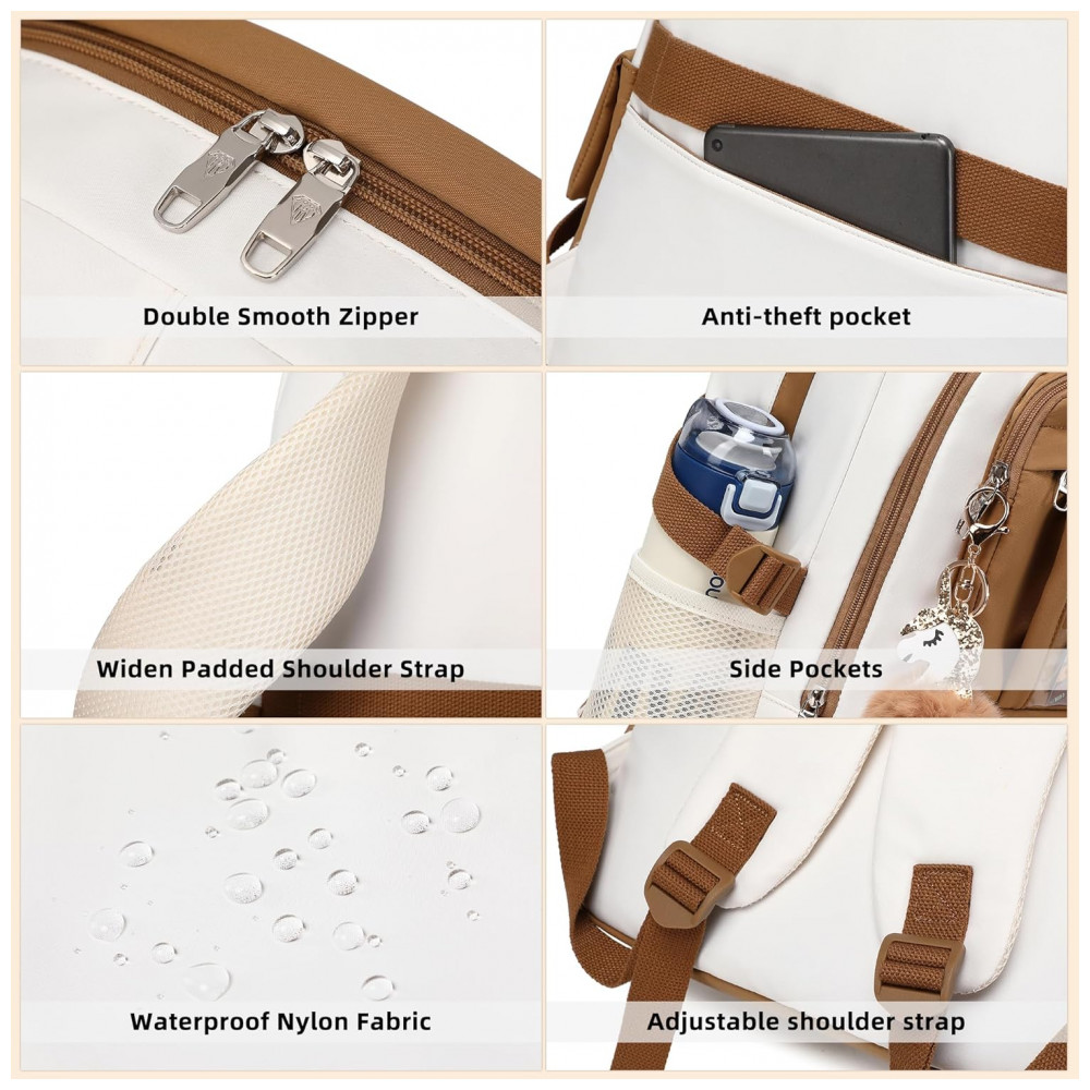 Mochila LXYGD 3 em 1 bege e cáqui para notebook até 16″ com lancheira e estojo impermeável