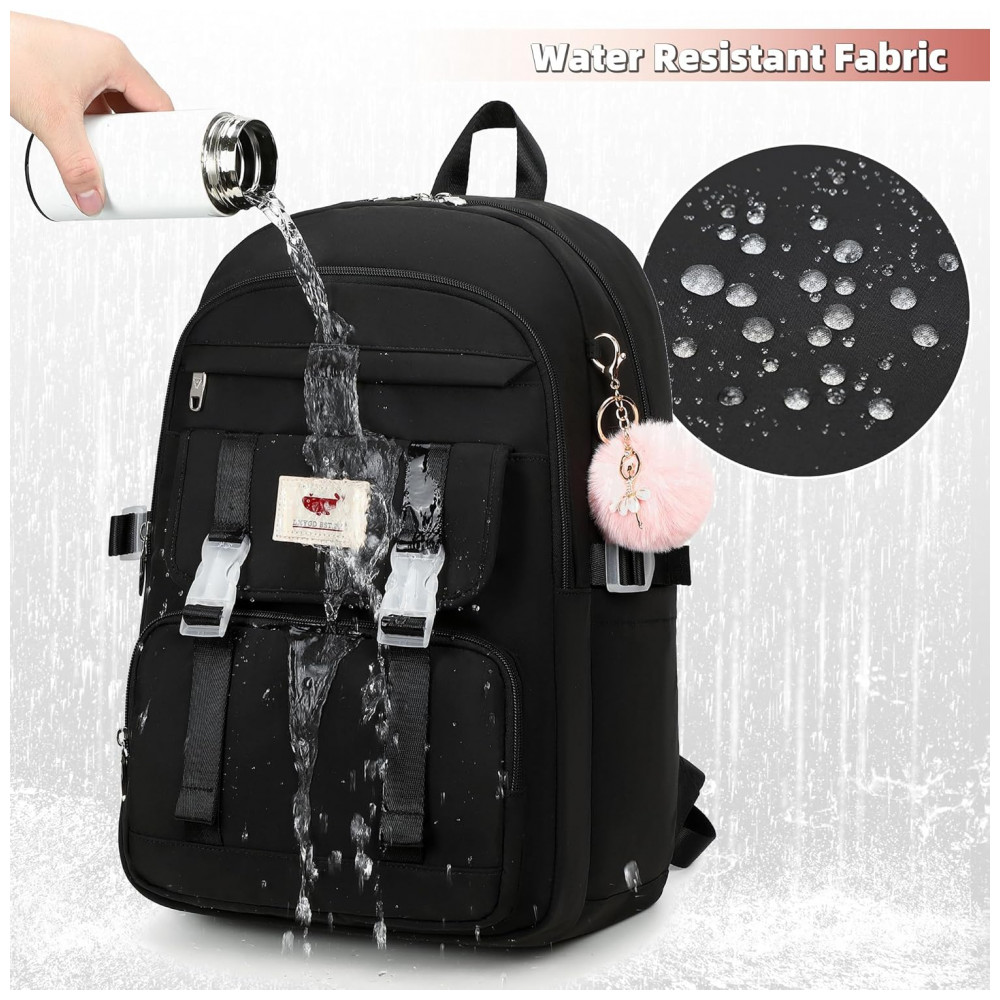 Mochila LXYGD 3 em 1 preta para notebook até 16″ com lancheira e estojo impermeável