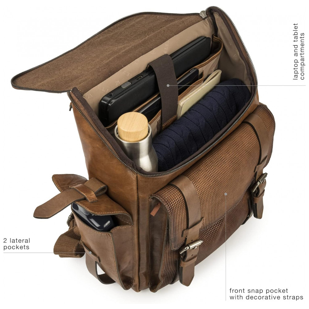 Mochila Masculina para Laptop de Couro e Fecho Magnético VELEZ Marrom