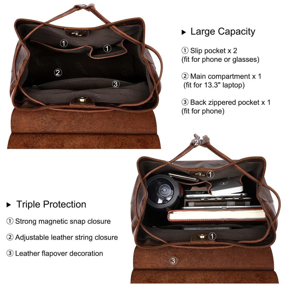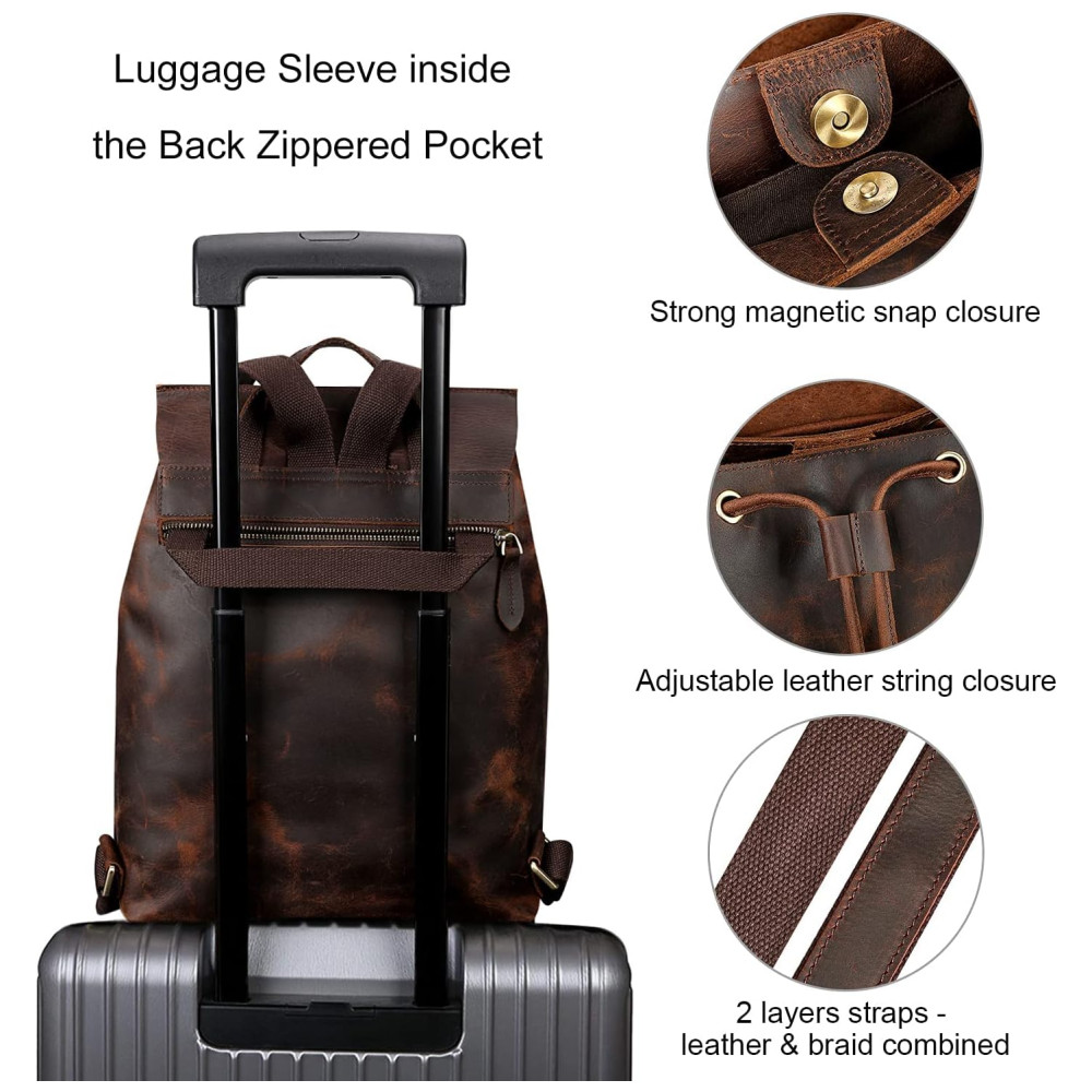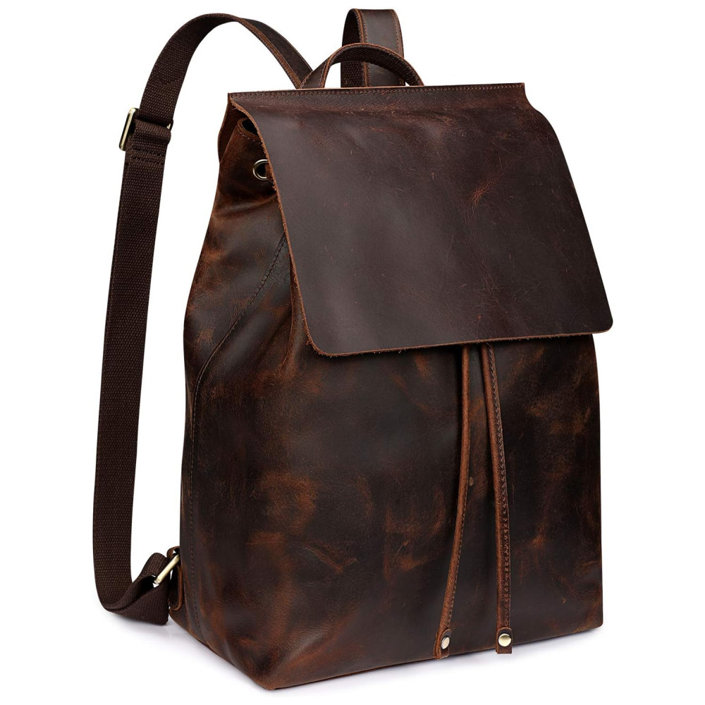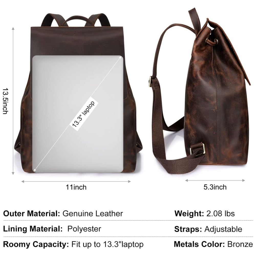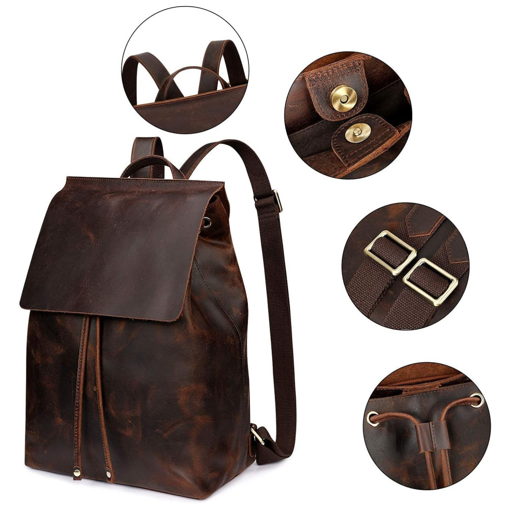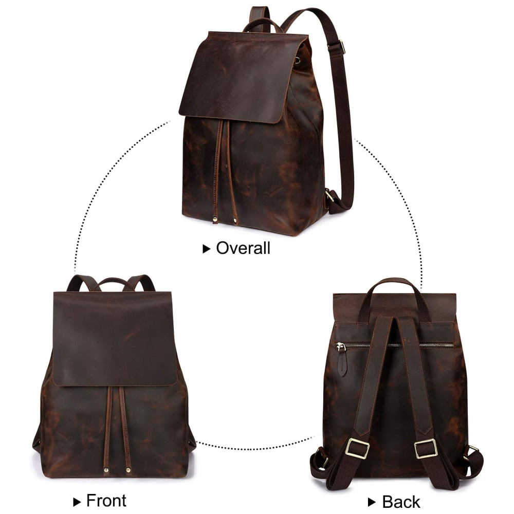 100 Couro Couro de Cavalo Louco de Grau Premium sem PU ou materiais falsos BRONZE Metal Hardware O forro atualizado evita rasgar facilmente A alça de mochila MACIA e LARGA alivia o estresse em seu ombro. Melhor do que qualquer outra mochila de couro não