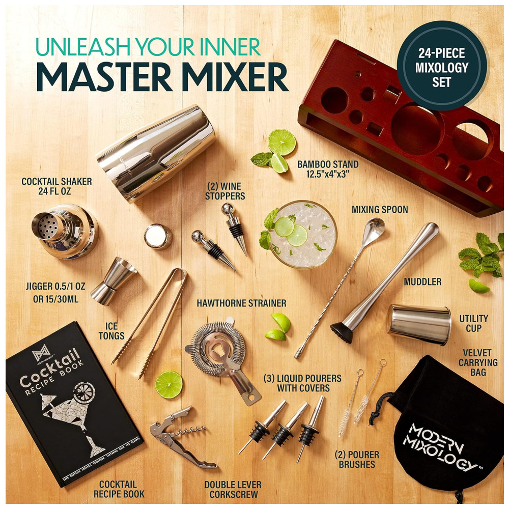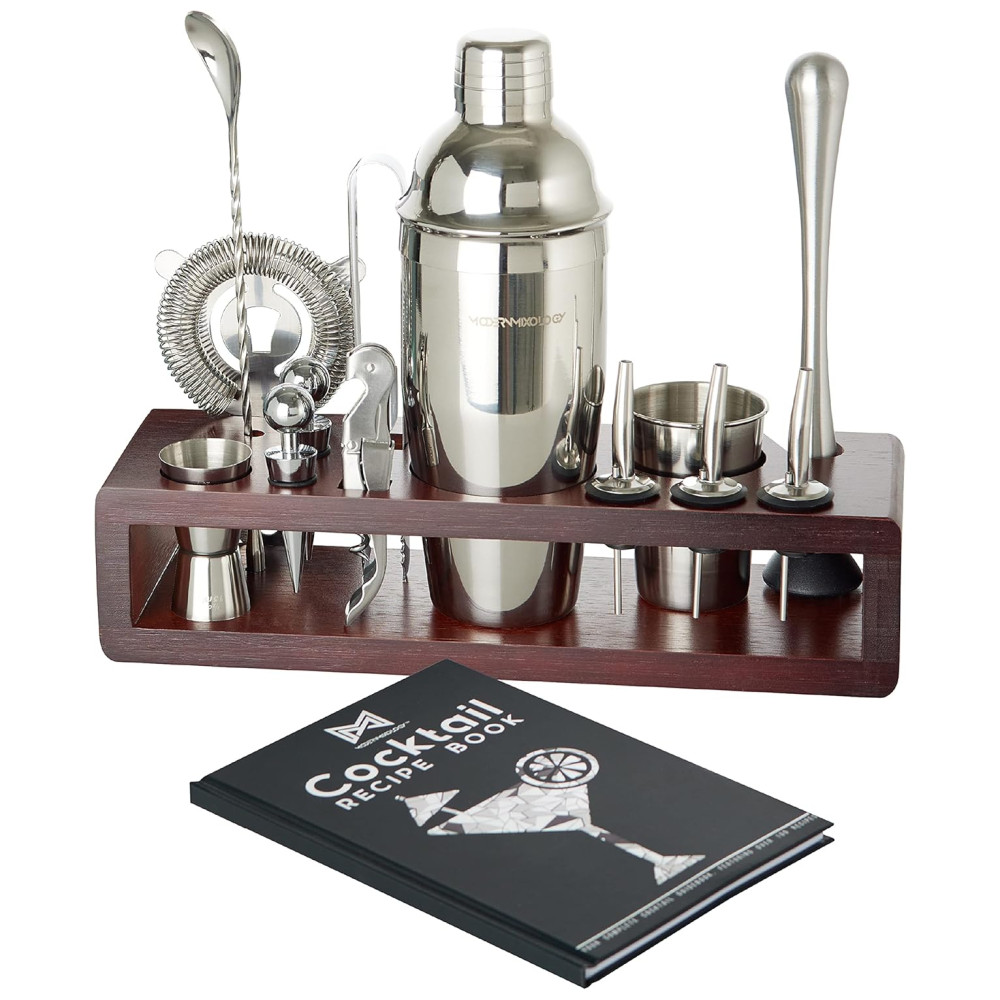 Modern Mixology Kit Bn Profissional 24 Peças em Aço Inoxidável com Suporte e Livro de Receitas