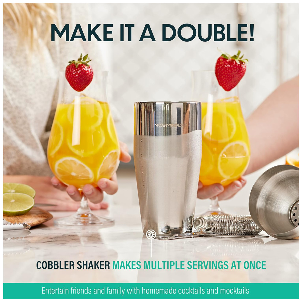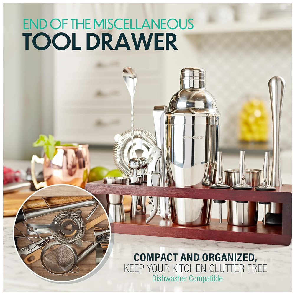 Alta qualidade Construído para durar, nosso conjunto agitador de bebidas em aço inoxidável permite que você misture por muitos anos. Seu design compacto e organizado mantém seus utensílios de bar em um só lugar e sua cozinha livre de bagunça
