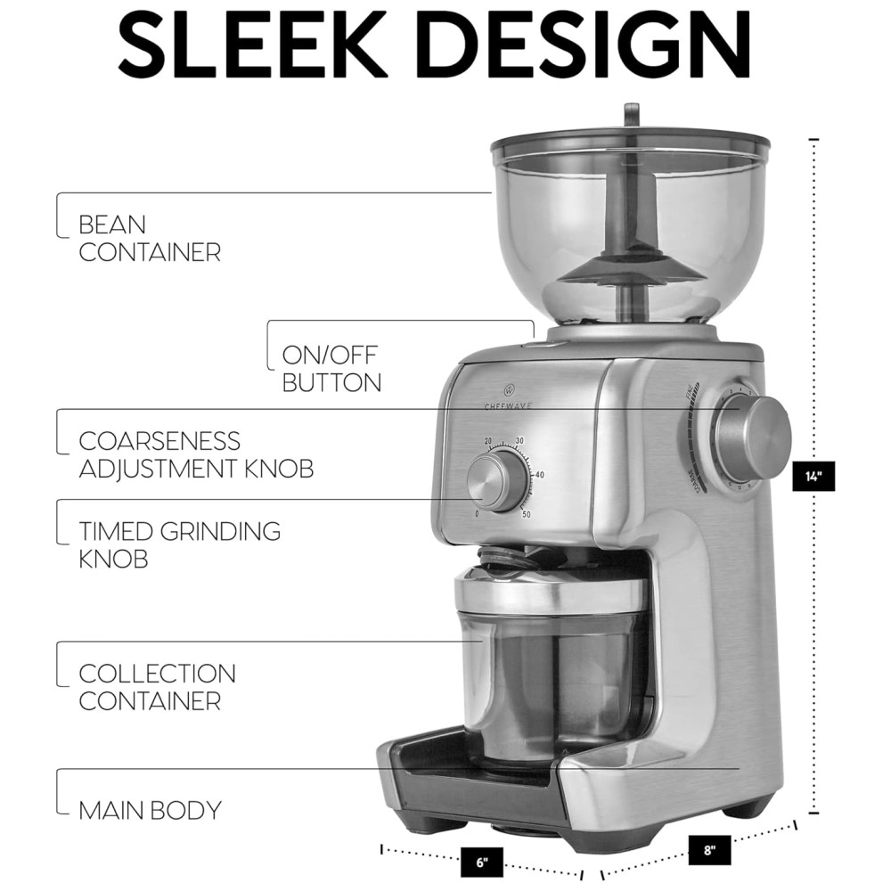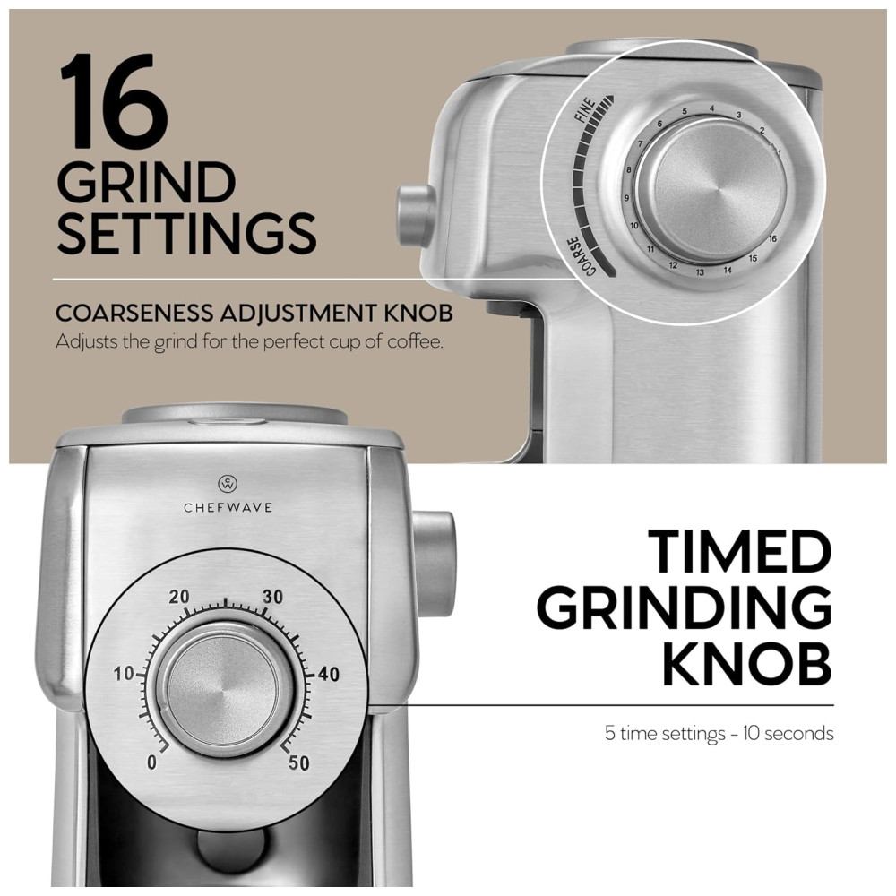 Moedor de Café Cônico 16 Configurações e Acessórios CHEFWAVE CW CG01SS Cinza