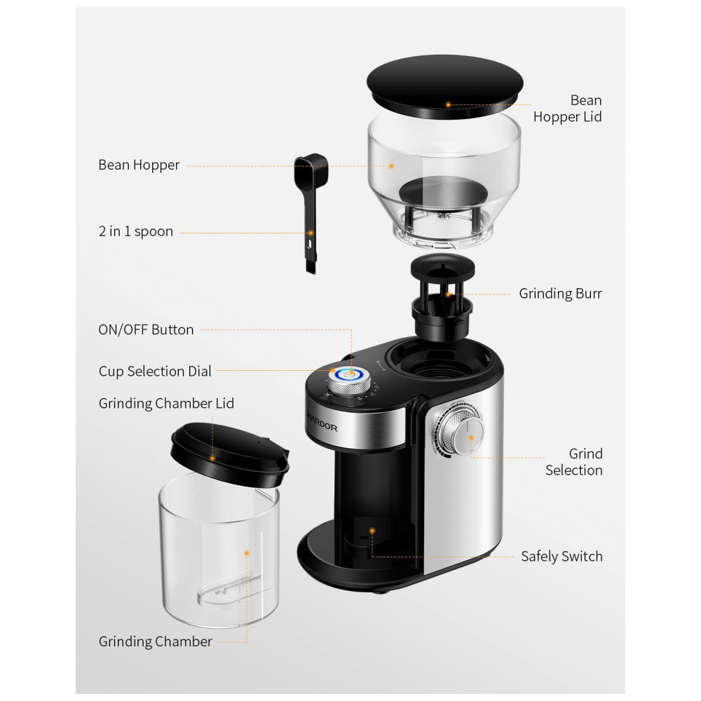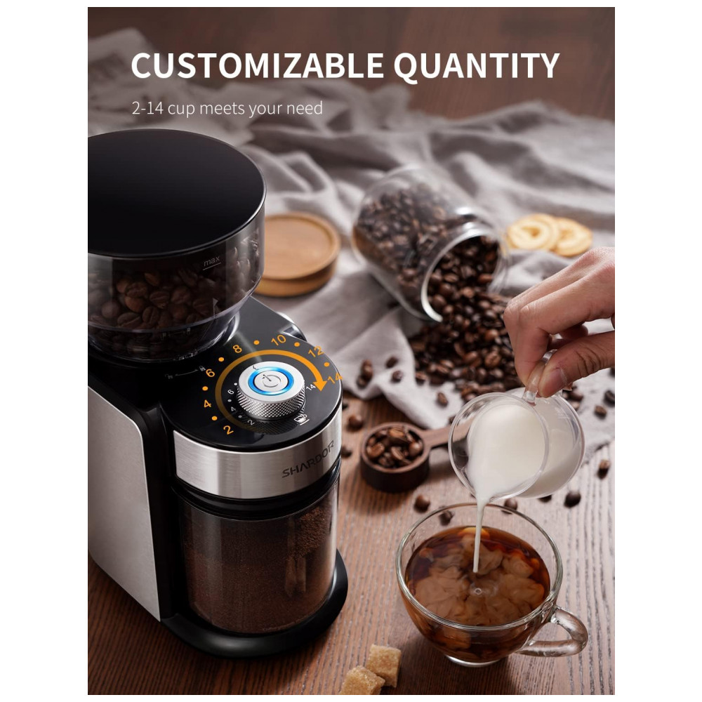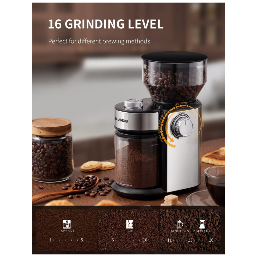 Moedor de Café Elétrico Ajustável com 16 Configurações de Moagem 110V SHARDOR Prata