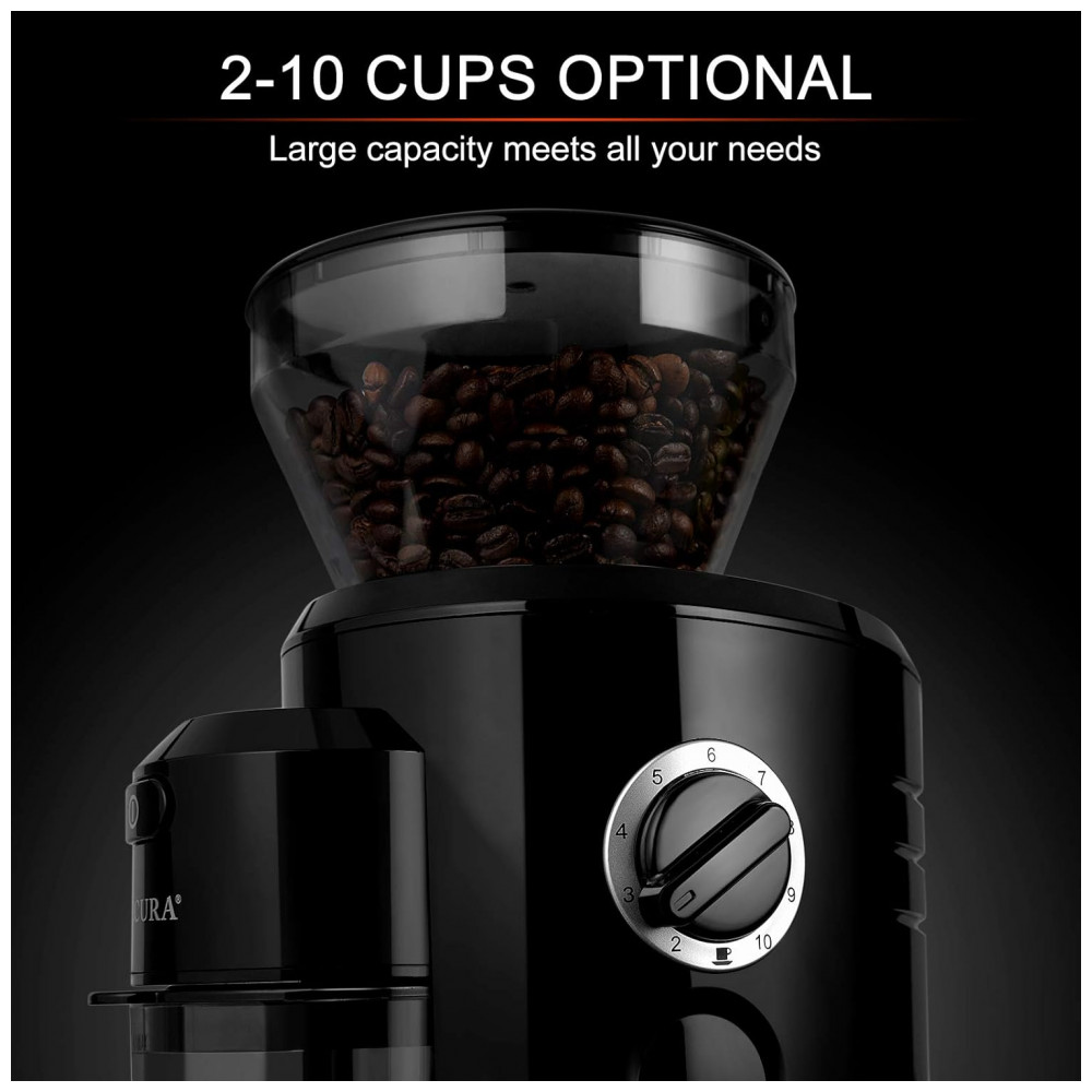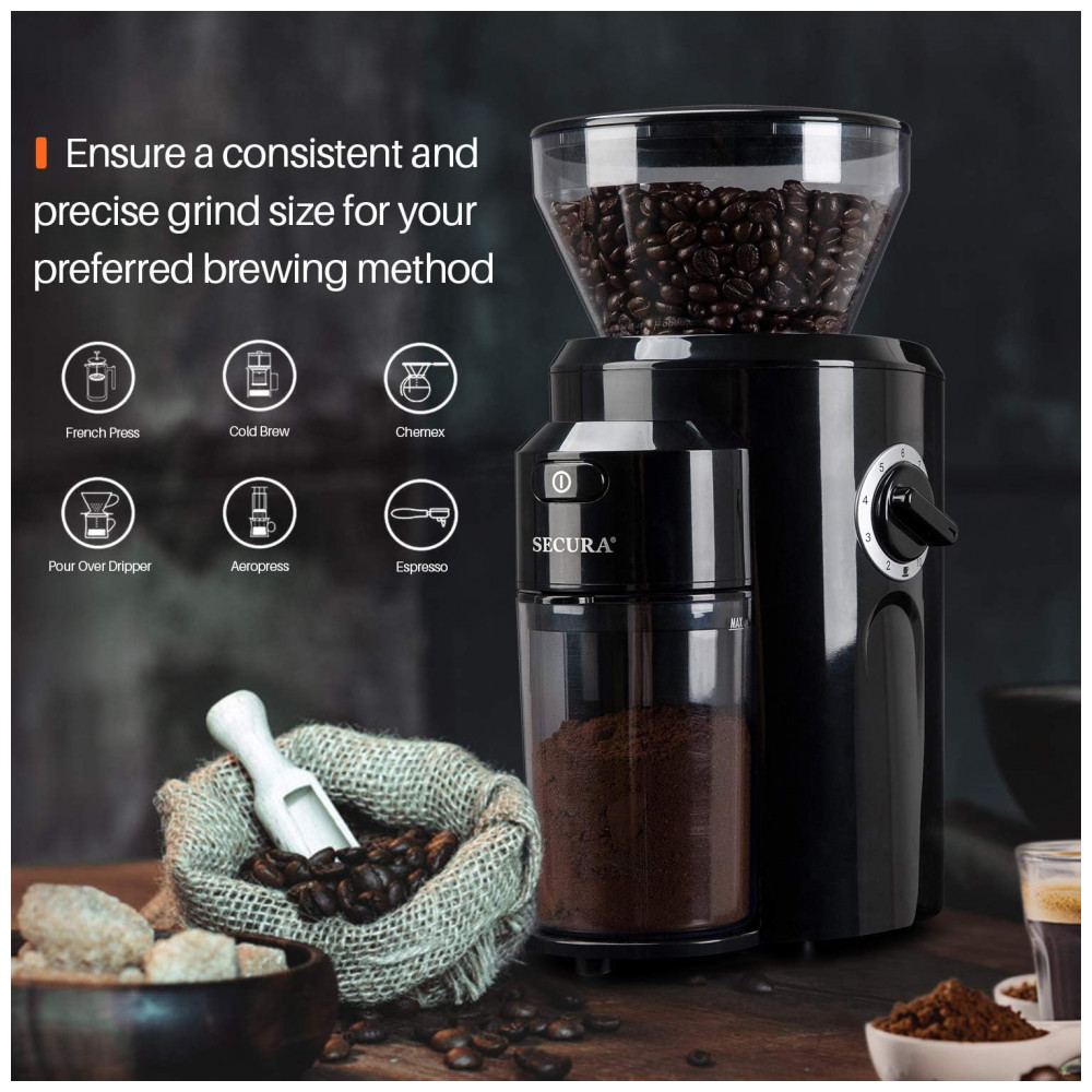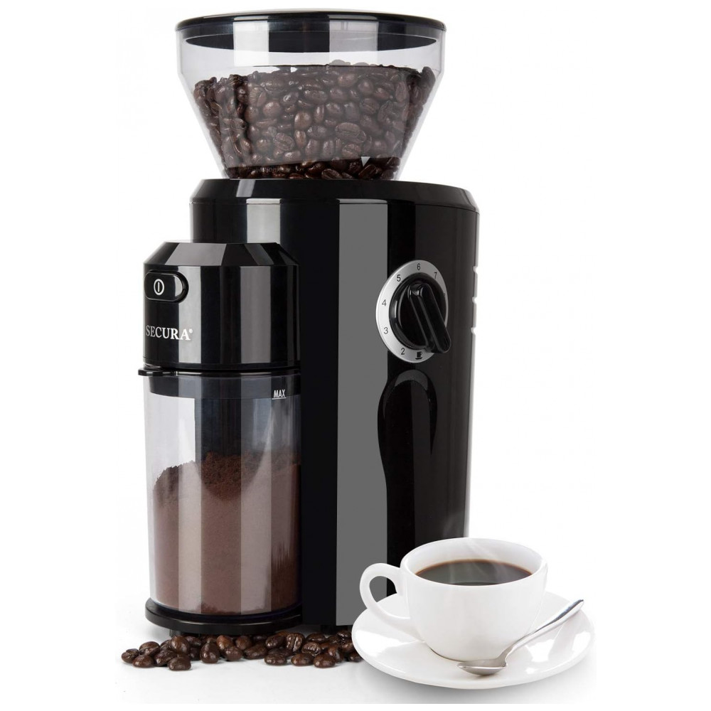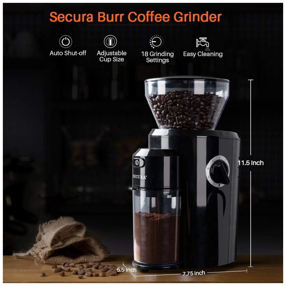Moedor de Café Elétrico Ajustável com 18 Configurações de Moagem 110V 110W Secura Home Preto
