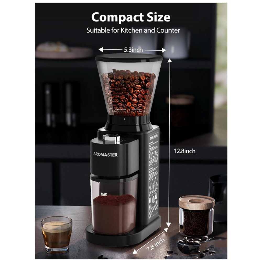 Moedor de Café Elétrico de Aço Inoxidável com 24 Configurações de Moagem 110V Aromaster Preto