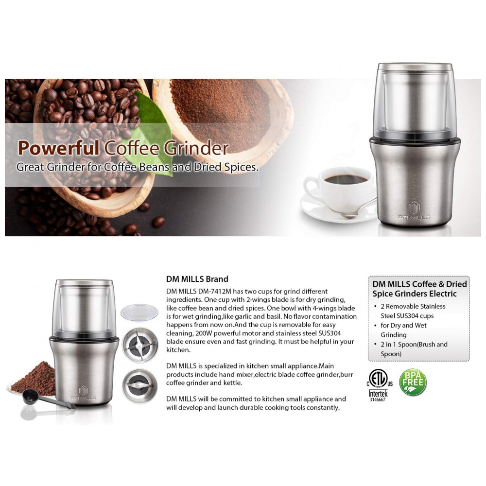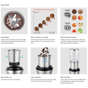 Moedor de Café com Potência 200W,120V,60Hz Capacidade de 2,5 onças, 70 g, rende até 10 xícaras de café Ótimo para moer grãos de café, especiarias secas, nozes e grãos.