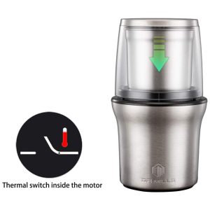 pequeno moedor de café Com o interruptor térmico, pode funcionar novamente após cerca de 30 minutos de descanso se parar por uso anormal.