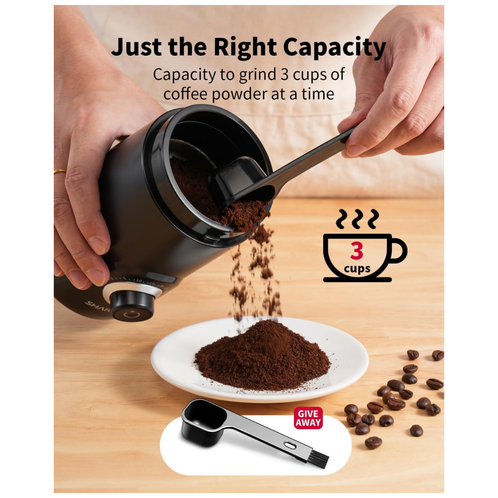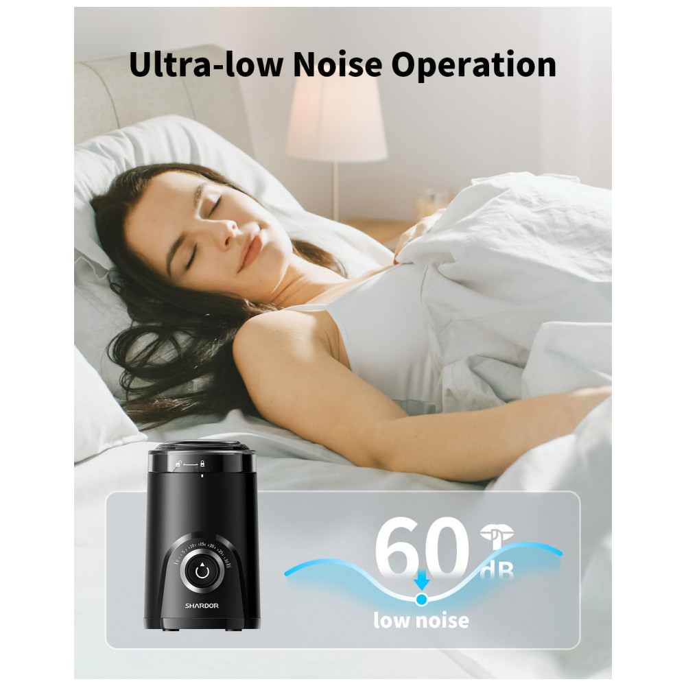 Moedor de café elétrico SHARDOR preto super silencioso controle por tempo ajuste de moagem grossa a fina 110V
