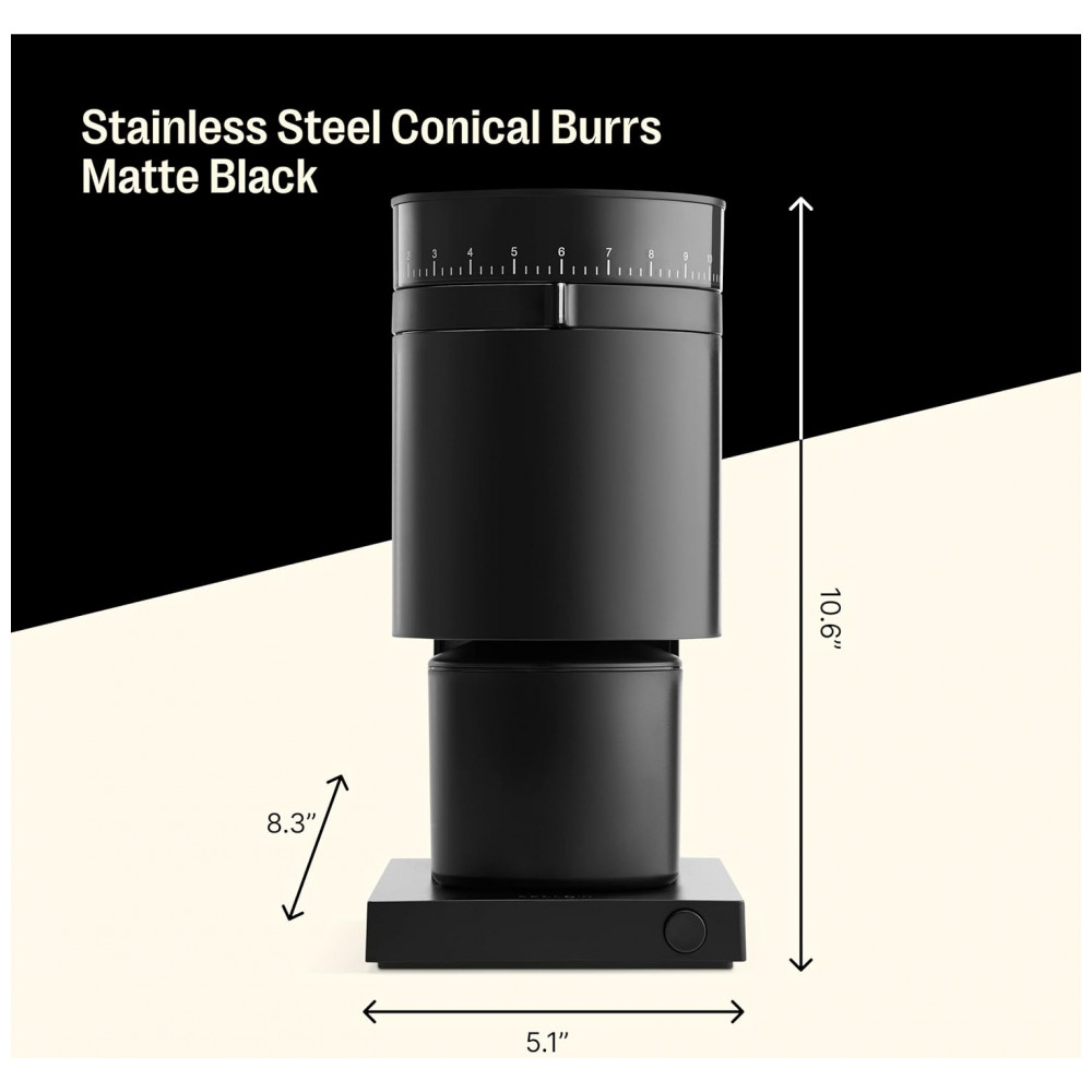 Moedor de Café Fellow Opus Preto Fosco Moagem Cônica com 41 Ajustes para Espresso Pour-Over French Press e Cold Brew 110V
