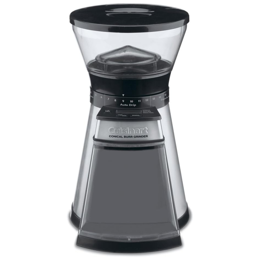 Cor Prata. O elegante moinho de rebarba cônico programável Cuisinart em aço inoxidável escovado produz resultados perfeitos todas as vezes para todas as suas necessidades de café com 18 configurações, desde grosseiras para a sua imprensa francesa até finas para café expresso rico. O moedor de rebarba cônico produz uma moagem uniforme sem sacrificar os óleos naturais de seus grãos de café para obter resultados ricos e saborosos. Com uma tela LCD de fácil leitura, mostrando a hora, a precisão e o número de xícaras, o café é mais fácil e fresco do que nunca