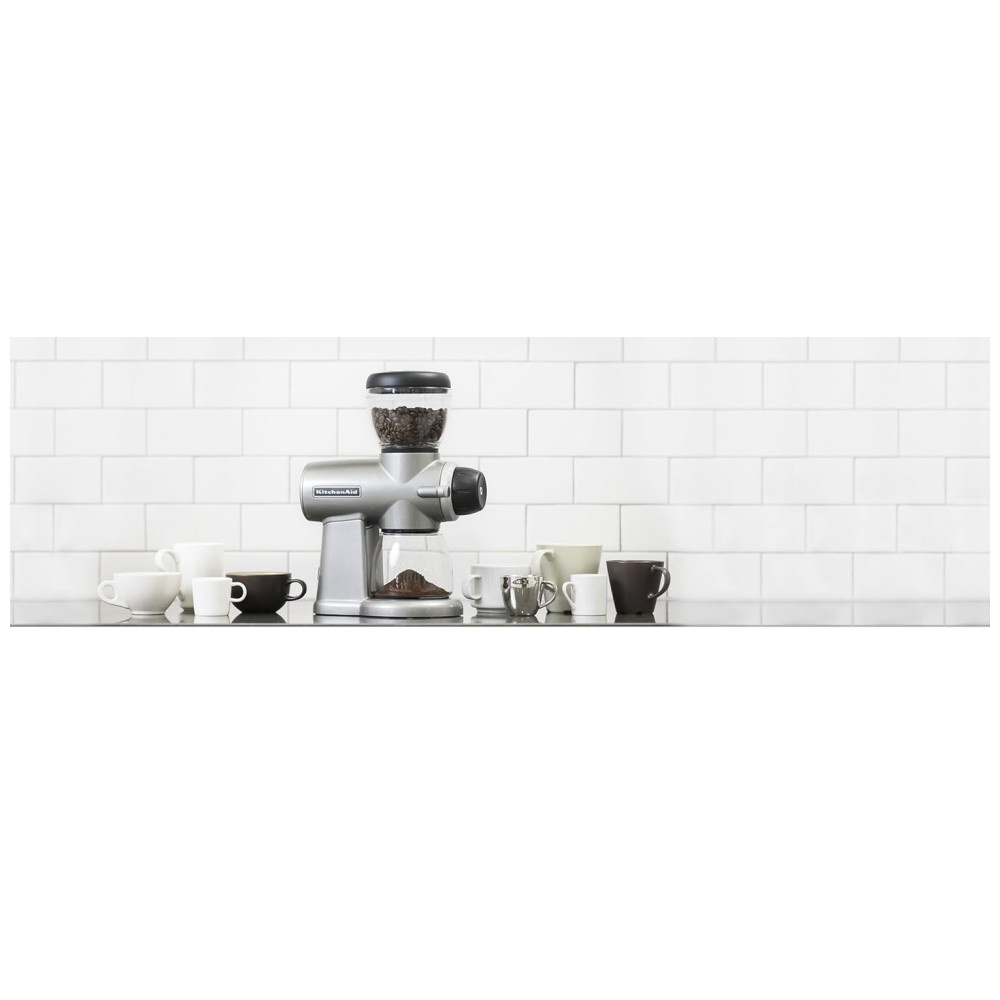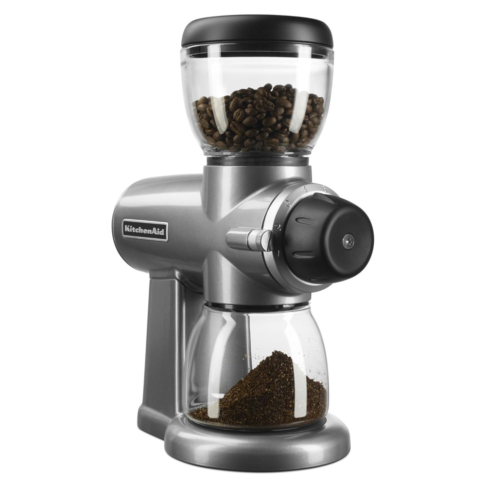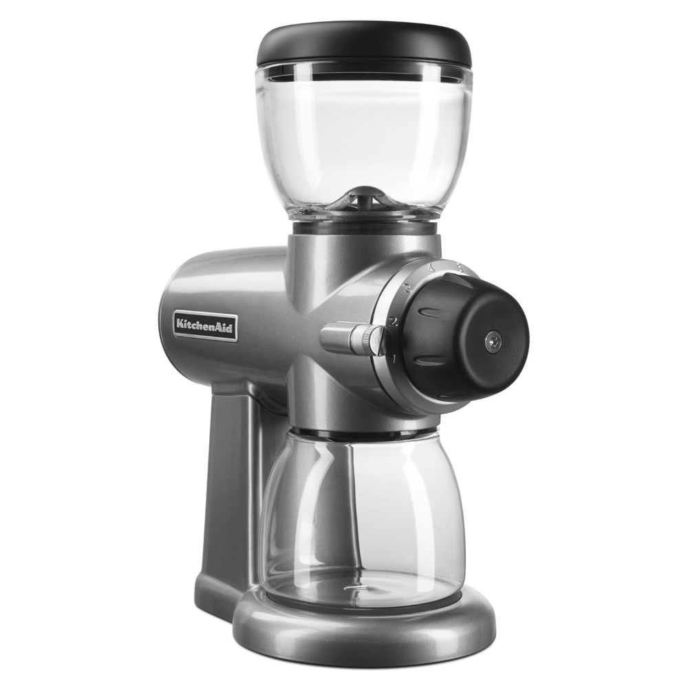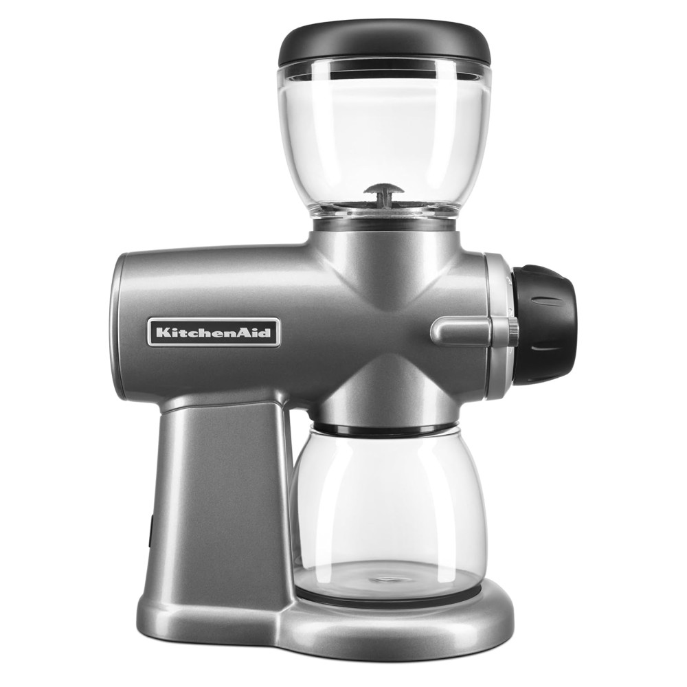 A moagem controlada com 15 configurações de moagem permite excelente consistência da moagem e menores temperaturas de moagem. As rebarbas de corte em aço inoxidável oferecem durabilidade e desempenho poderoso. 200ml. A tremonha de vidro e a jarra de moagem minimizam a aderência estática das moagens de café. O design elegante e simplificado permite que ele seja zenado em sua bancada ou em um armário. Durável e fácil de limpar. As rebarbas giram a 450 rpm, minimizando o acúmulo de calor por atrito e preservando o sabor. Inclui moedor de rebarbas, escova portátil e escova de limpeza de rebarbas. Projetado para o melhor desempenho e confiabilidade, o KitchenAid Burr Grinder usa rebarbas de aço inoxidável para moer café de forma consistente em qualquer um dos 15 níveis de moagem disponíveis. A tremonha de vidro para grãos contém até sete onças de grãos integrais que você pode moer rapidamente para o café da French Press, cafeteiras de gotejamento automático, café expresso ou qualquer outra coisa. Por KitchenAid