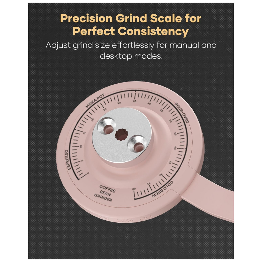 Moedor de café manual Cocinare ESSENCE GO B38 Ultra rosa vintage 30g GhostEdge Ultra 80 ajustes