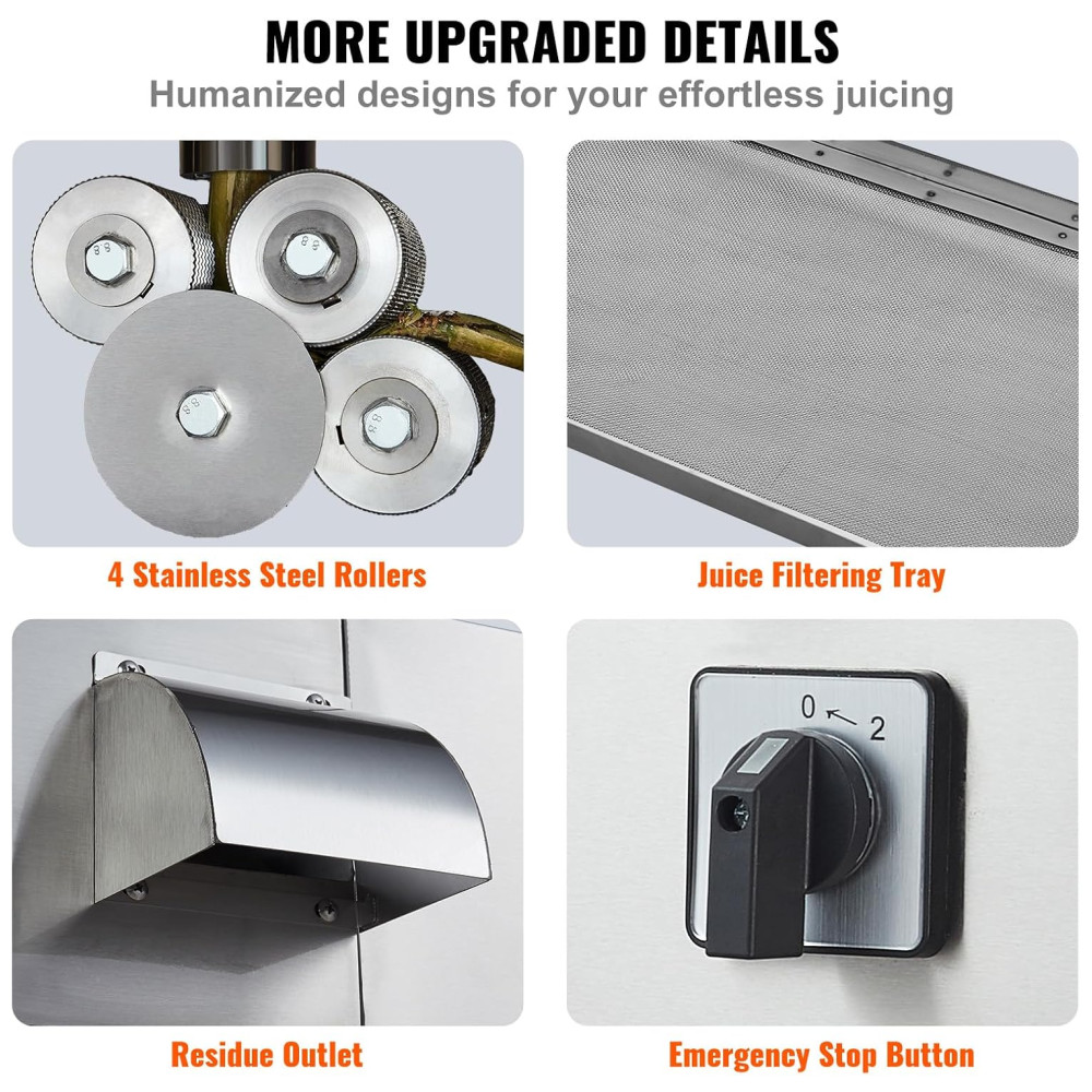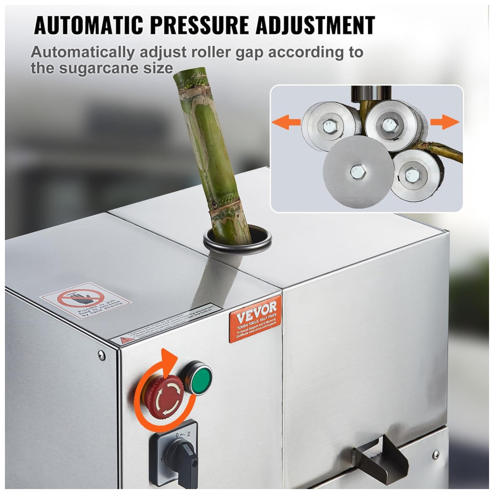 Moedor de Cana de Açúcar Elétrico com 4 Rolos e Porta Transparente 110V VBENLEM Prata