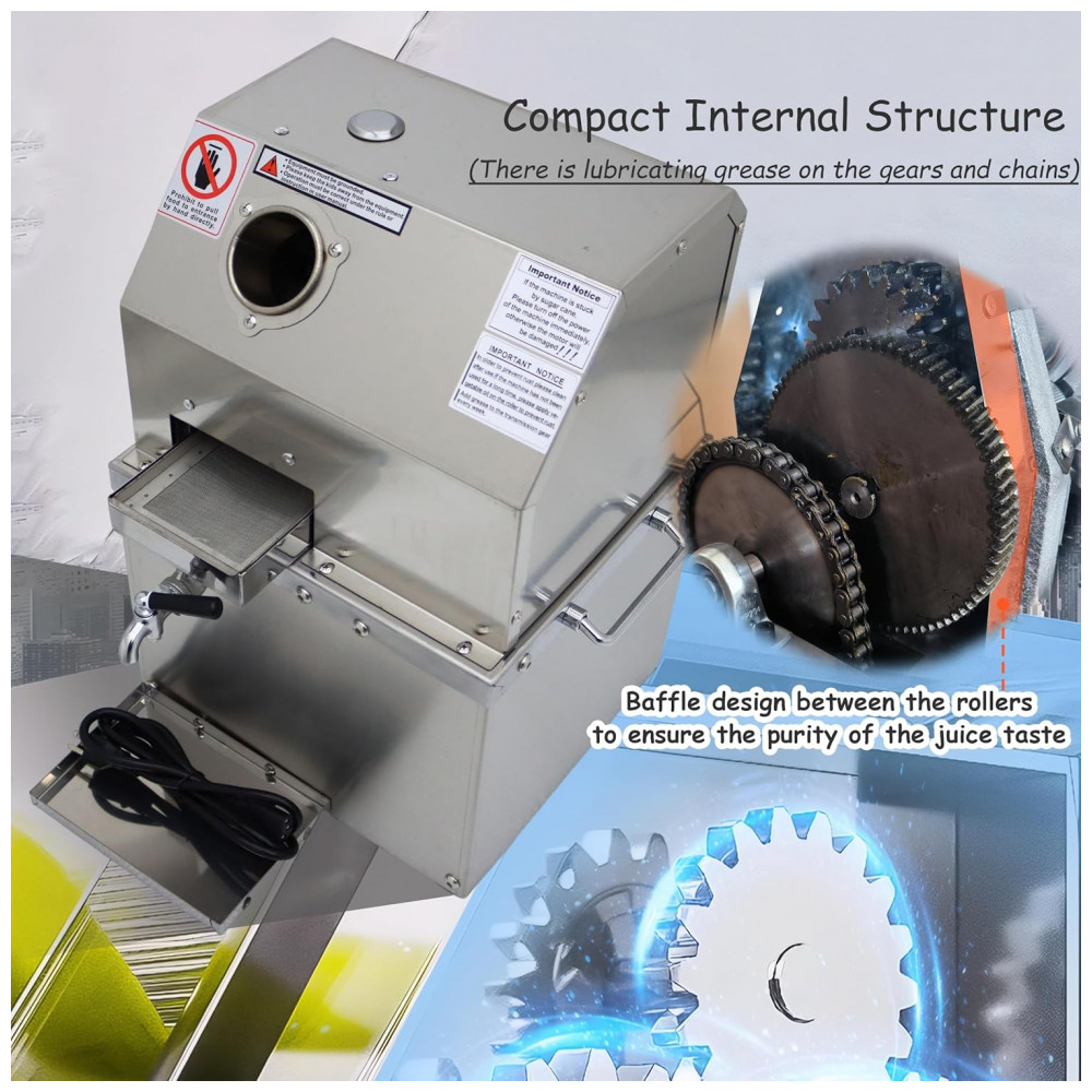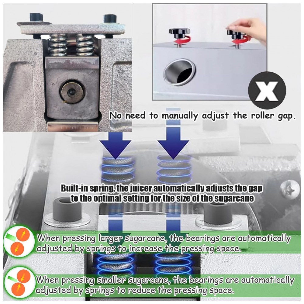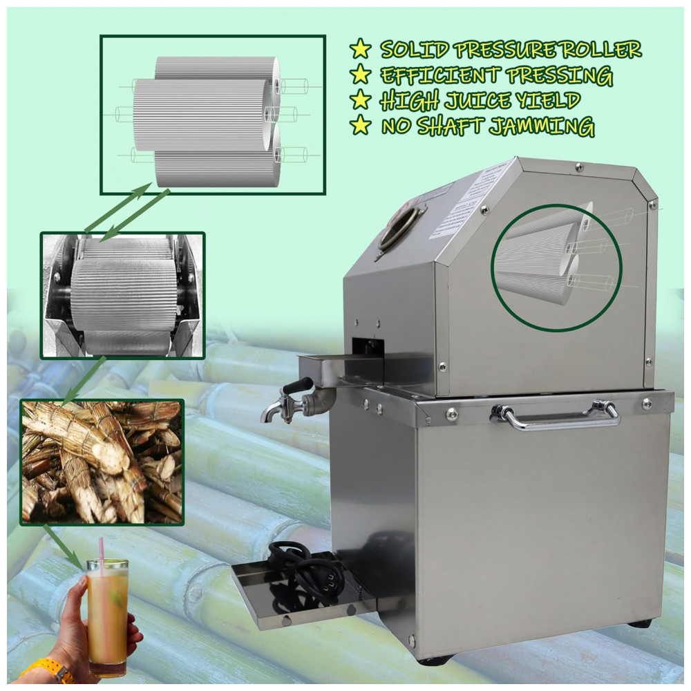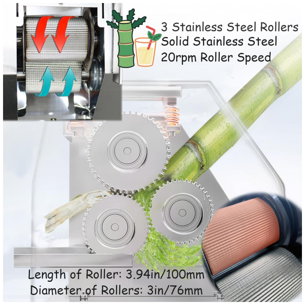Aplicação e operação Aplicação esta máquina pode não apenas extrair suco de cana de açúcar, mas também ser usada para extrair sorgo doce, gengibre, etc. Pode ser usada em lojas de bebidas, restaurantes, cantinas, escolas, etc