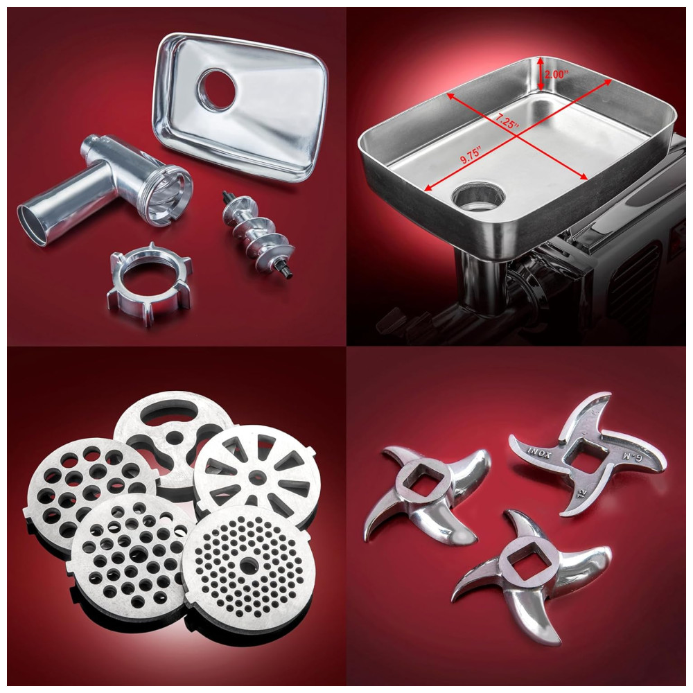 O QUE ESTÁ INCLUÍDO Este Turboforce 3000 Series Classic inclui 1 Tamanho 12 Alumínio Polido Produto Alimentício Cabeçote de Trituração com Alimentador de Carne, 3 Lâminas de Corte de Aço Inoxidável 304, 3 Tamanhos de Placas de Moagem, 1 Placa de Recheio de Salsicha