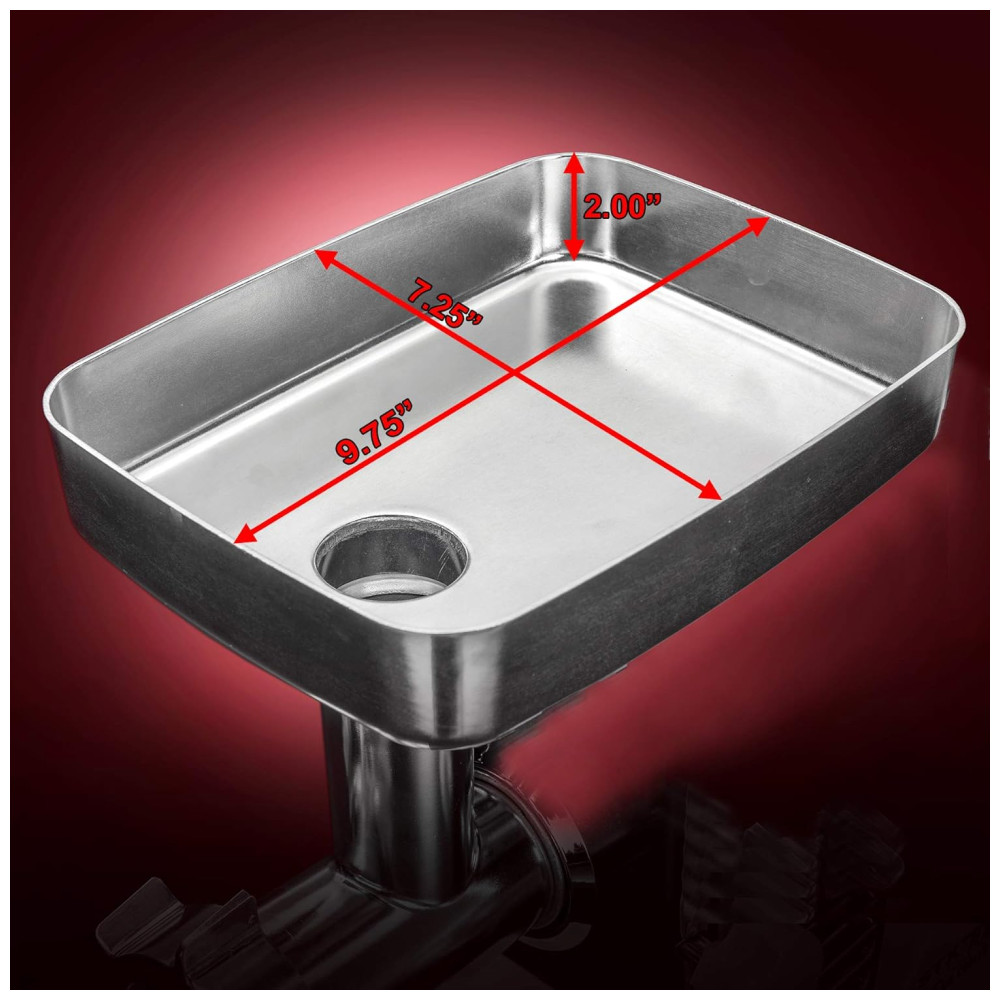 O sistema patenteado de resfriamento por indução de ar com capuz apresenta uma potência de motor travada de 1.800 watts e um disjuntor para segurança. Este moedor é um moedor de tamanho n 12, não um moinho de tamanho n 5 ou n 8 como moedores menores, saída de diâmetro de 2 1 , 2 polegadas para carne moída e tubo de alimentação de 2 polegadas de diâmetro.