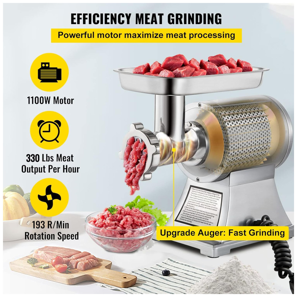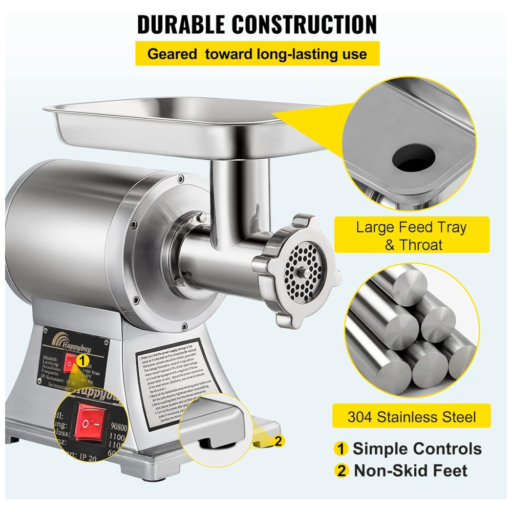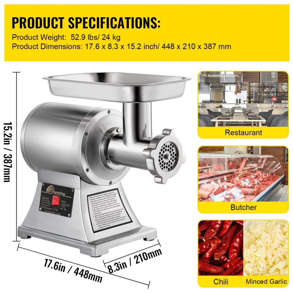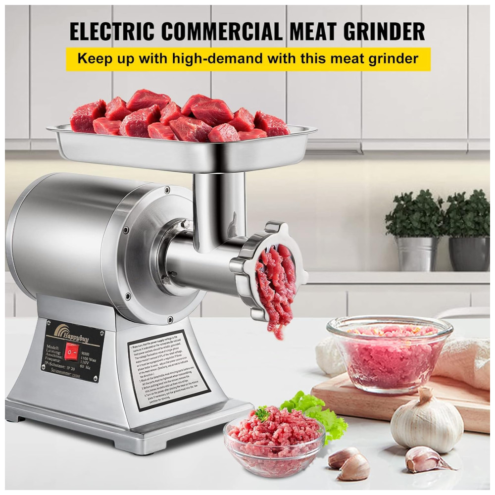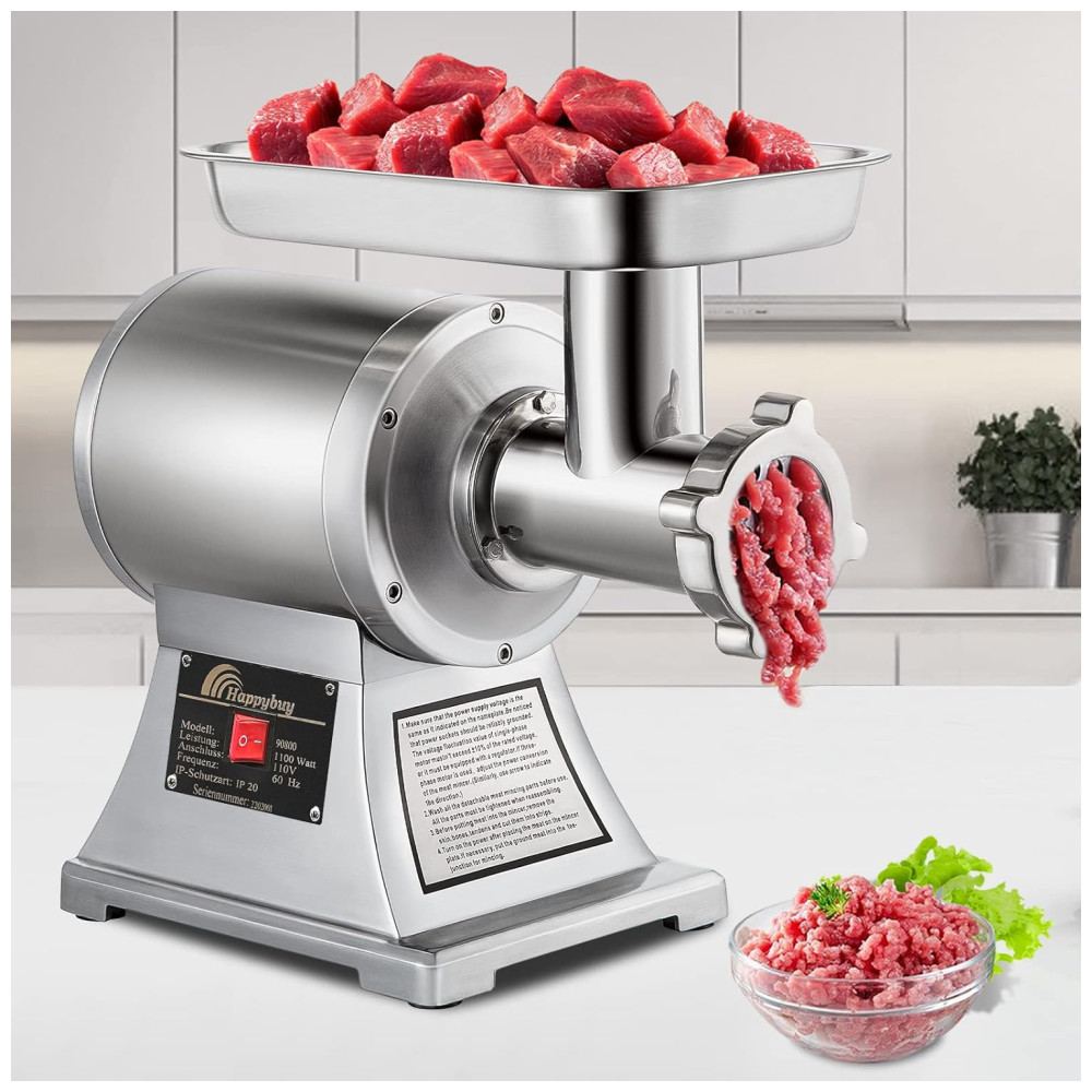Moedor de Carne Elétrico Profissional Até 249 kg H Aço Inoxidável 1100W 110v HAPPYBUY Meat Grinder Prateado
