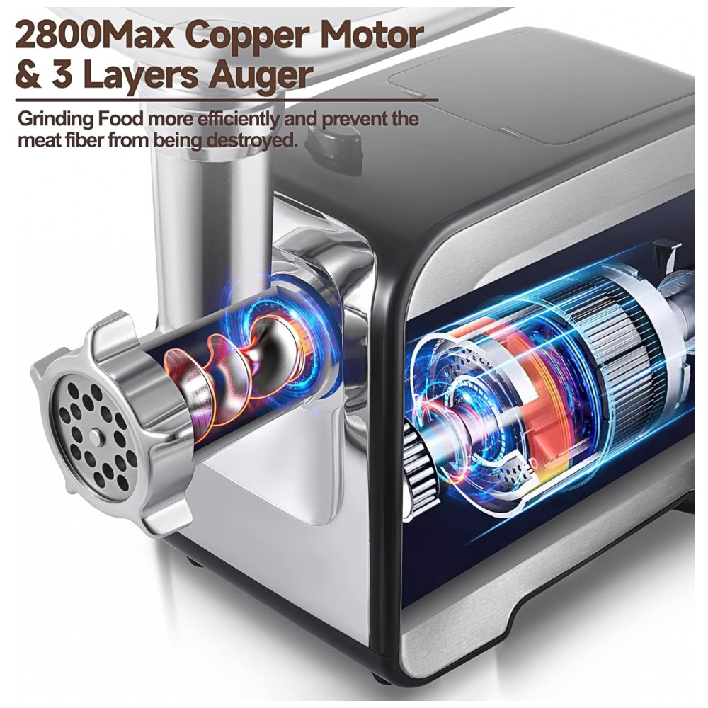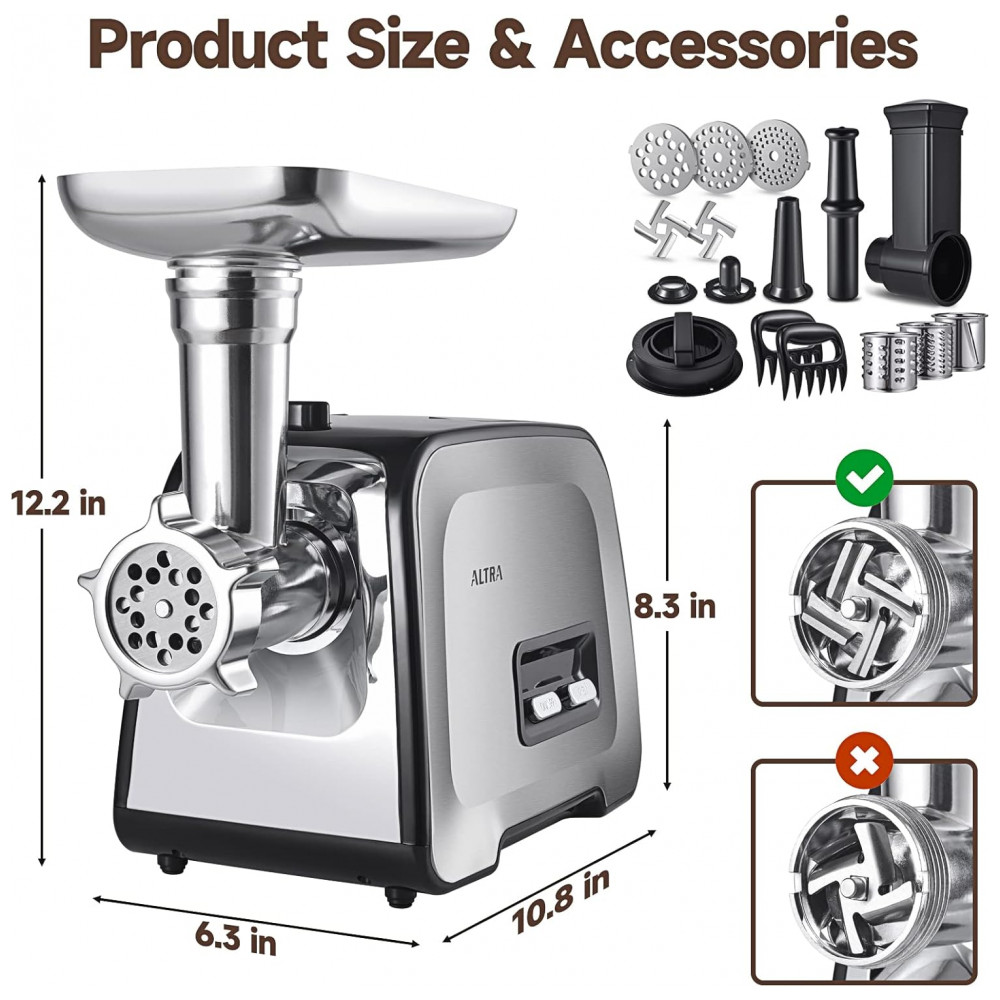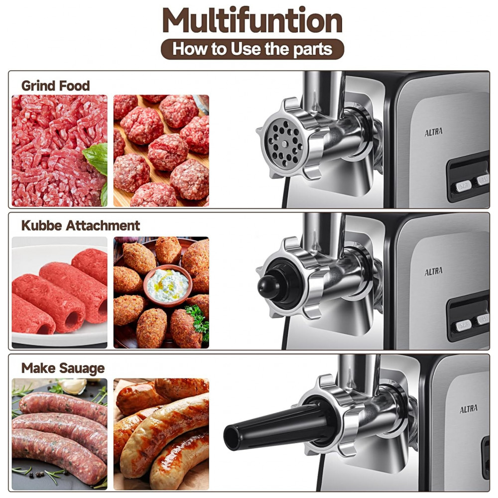 Moedor de Carne Enchedor de Linguiça Moedor Elétrico de Carne de 2800W com Lâminas de Aço Inoxidável 3 Discos de Moagem ALTRA LIFE