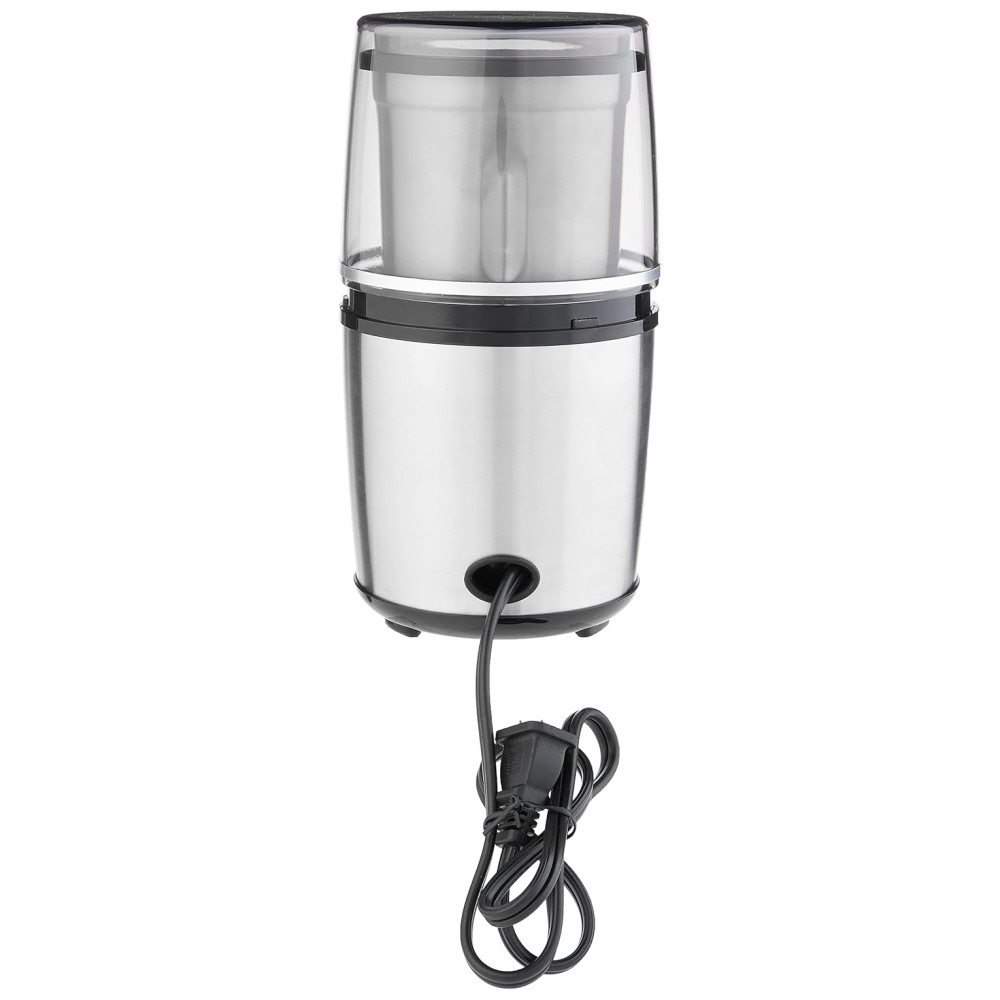 Moedor elétrico de especiarias e nozes com lâminas duráveis em aço inoxidável Motor para serviço pesado tampa superior para controle on , off simples a tigela comporta 90 gramas espaço de zenamento extra na tampa pés de borracha antiderrapante Tampa e tigela laváveis na máquina de lavar louça manual de instruções com receitas incluídas Produto construído de acordo com os padrões elétricos norte americanos.