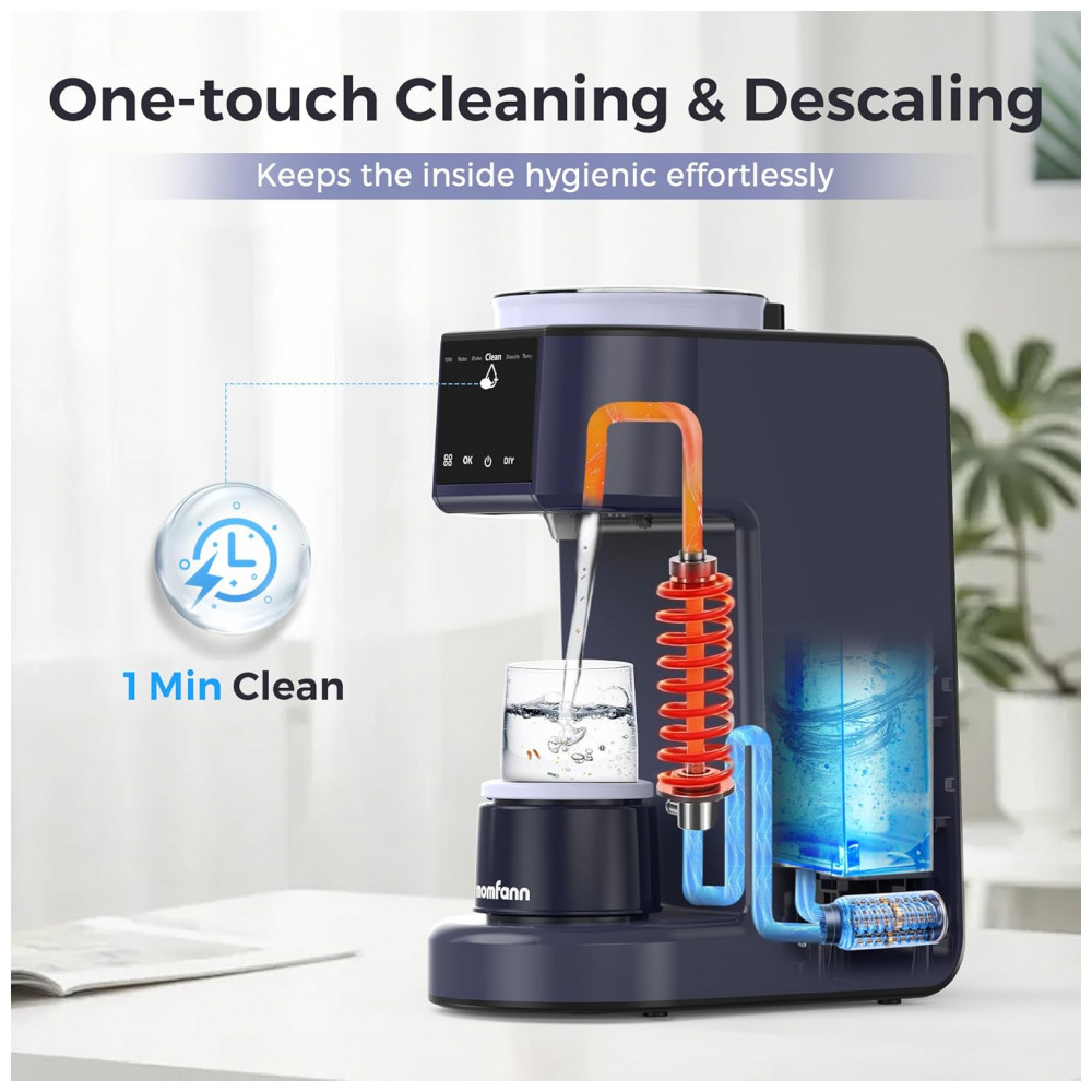 Tecnologias incluem limpeza one-touch para funil e tubulação de água, agitador inteligente que simula movimento manual para homogeneizar a fórmula.