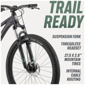 Bicicleta Mountain Bike Mongoose Impasse 1.0 – Suspensão Completa Quadro em Alumínio 7 Velocidades Rodas 275″ Freios a Disco Matte Black