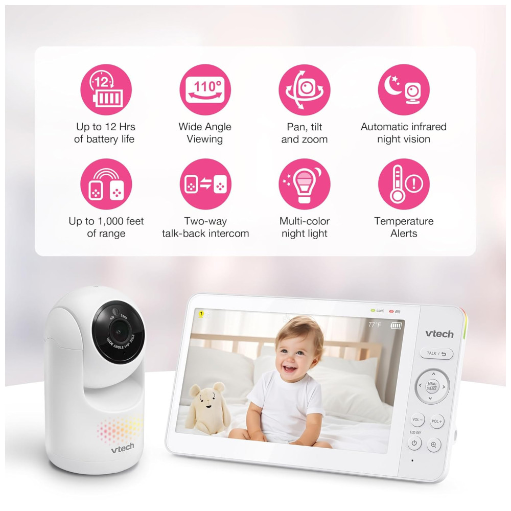 Monitor de Bebê Digital com Zoom Panorâmico e Inclinado Bateria de 5000mAh. VTech