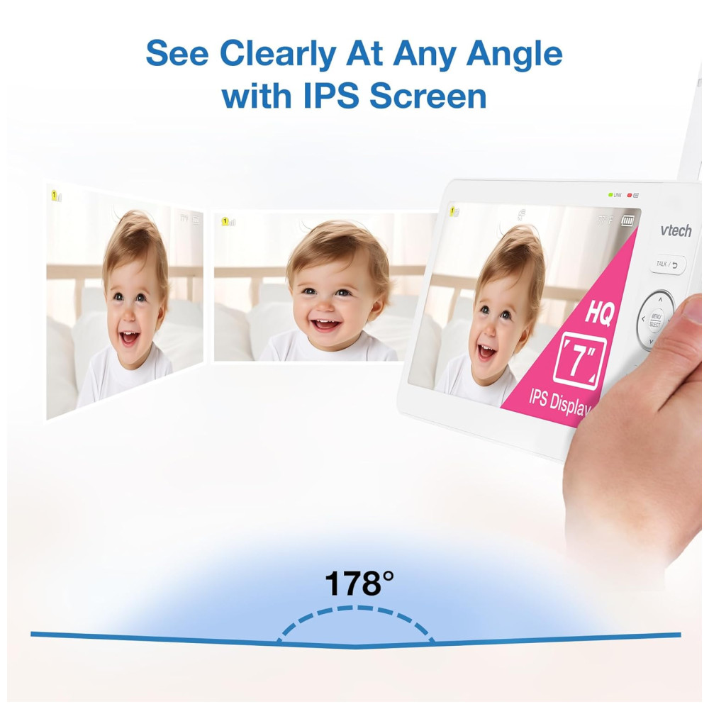 O Monitor de Vídeo Digital para Bebês VTech Advanced HQ Max 7 é um equipamento de alta qualidade e eficiência que oferece uma visão clara e detalhada do seu bebê. Com uma tela LCD colorida, você pode ver facilmente cada pequeno movimento e expressão com imagens nítidas em qualquer ângulo. Além disso, a câmera para bebês é equipada com zoom panorâmico e inclinado com visão ampla de 110 graus, permitindo até 4X de zoom da unidade dos pais.